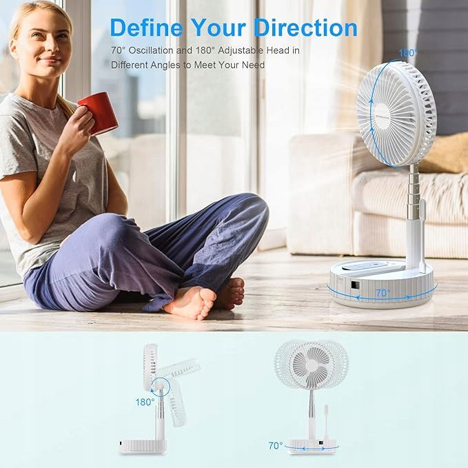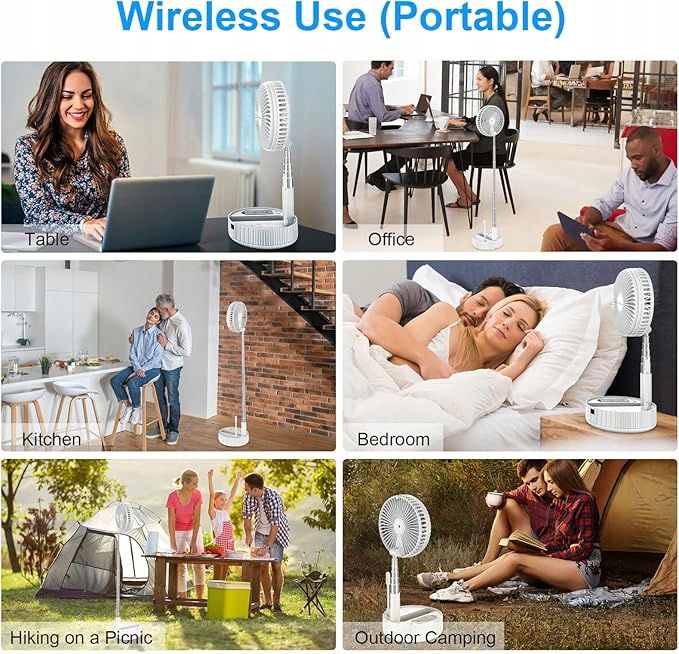 - Wielofunkcyjny składany wentylator stojący / wentylator stołowy: Ten wentylator z pilotem jest idealny zarówno do użytku domowego, jak i biurowego na zewnątrz. Umieść go w domu, kuchni i użyj jako wentylatora stojącego lub postaw na biurku i użyj go jako wentylatora biurkowego. Ten przenośny wentylator można złożyć do niewielkich rozmiarów, możesz go spakować do plecaka gdziekolwiek jesteś, na przykład na wędkowanie, kemping, podróże itp.