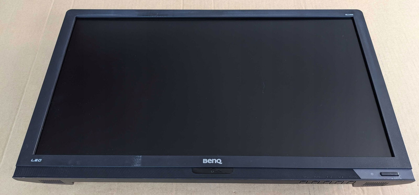 BenQ BL2400 24" LED VA Full HD 1920×1080 – monitor poleasingowy z matrycą posiadającą rysy widoczne podczas pracy. Obudowa może mieć typowe ślady użytkowania/transportu, jednak sprzęt jest w pełni sprawny technicznie i dobrze sprawdzi się jako tani monitor do biura, nauki lub codziennych zadań domowych.