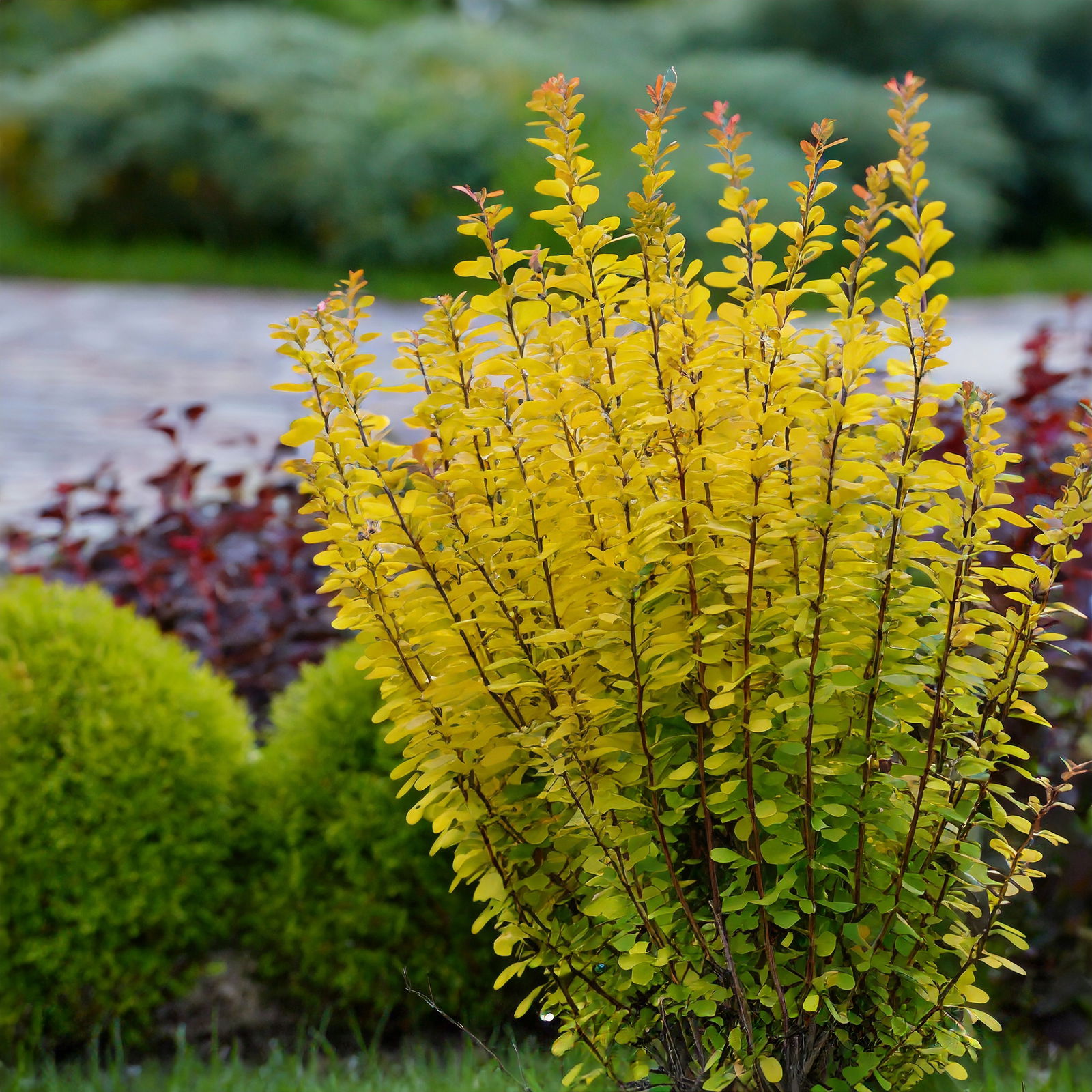 ☘️ Świetnie prezentuje się w kompozycjach kolorystycznych z ciemnymi iglakami czy purpurowymi krzewami.