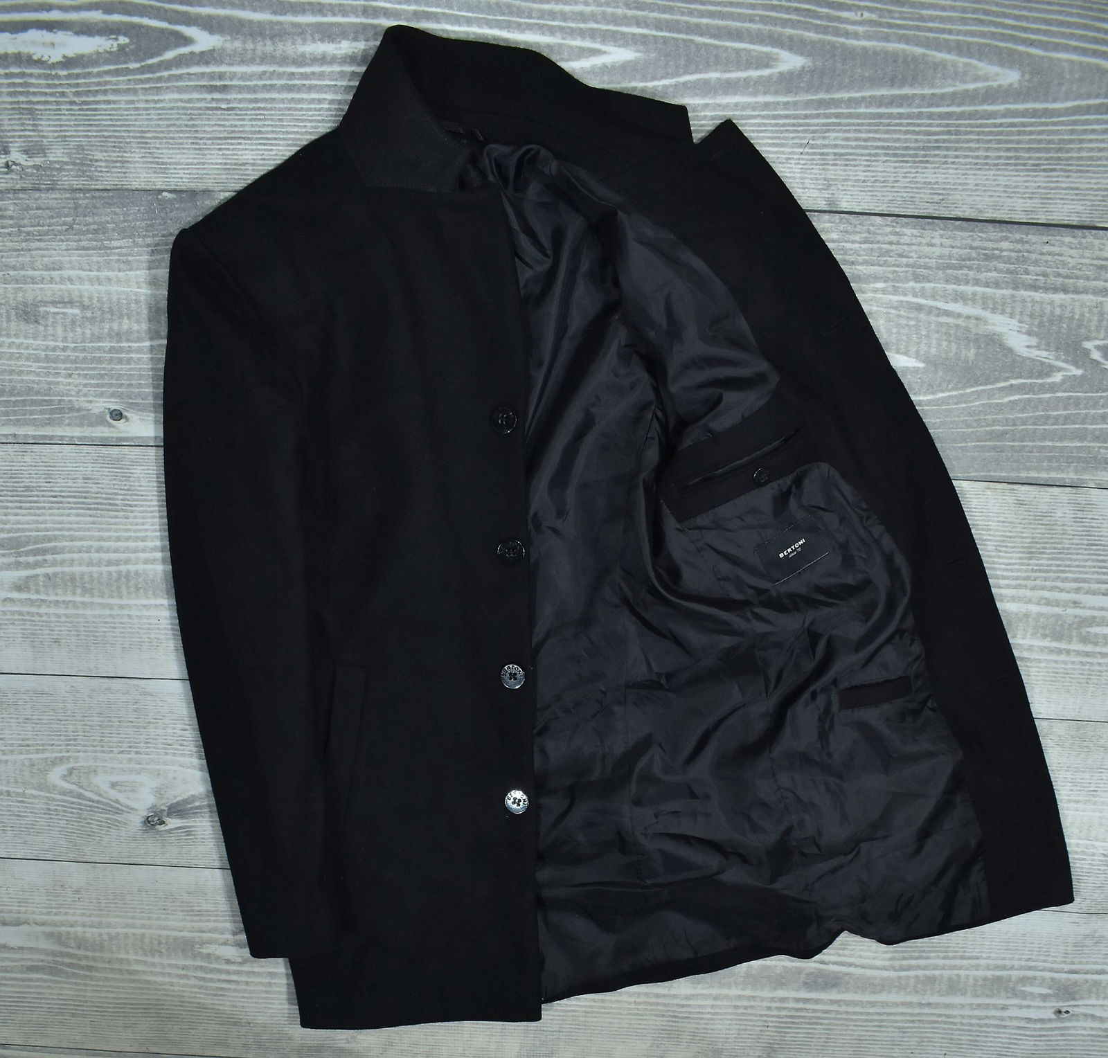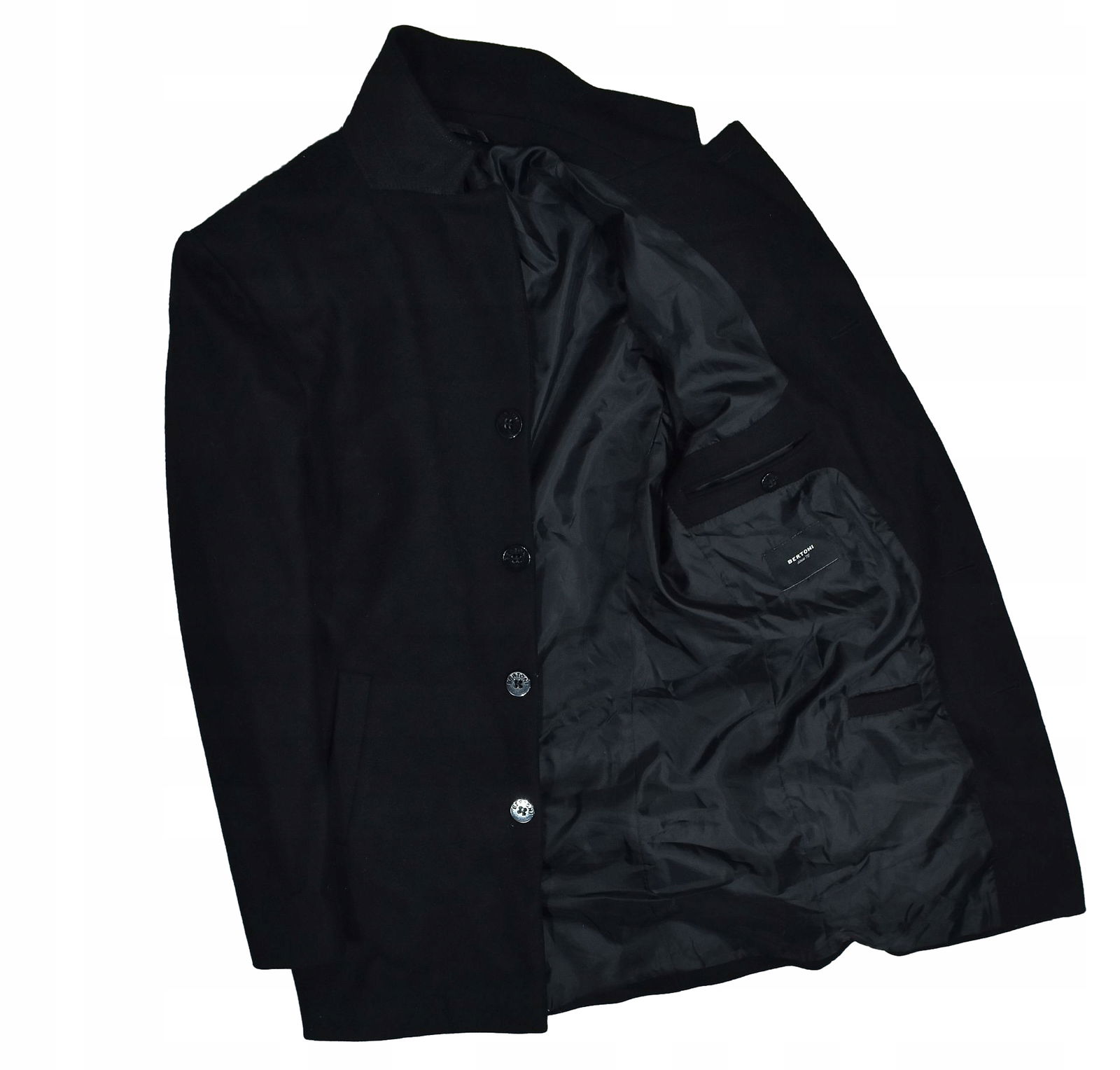 BERTONI Czarny Wełniany Płaszcz Męski Jednorzędowy L