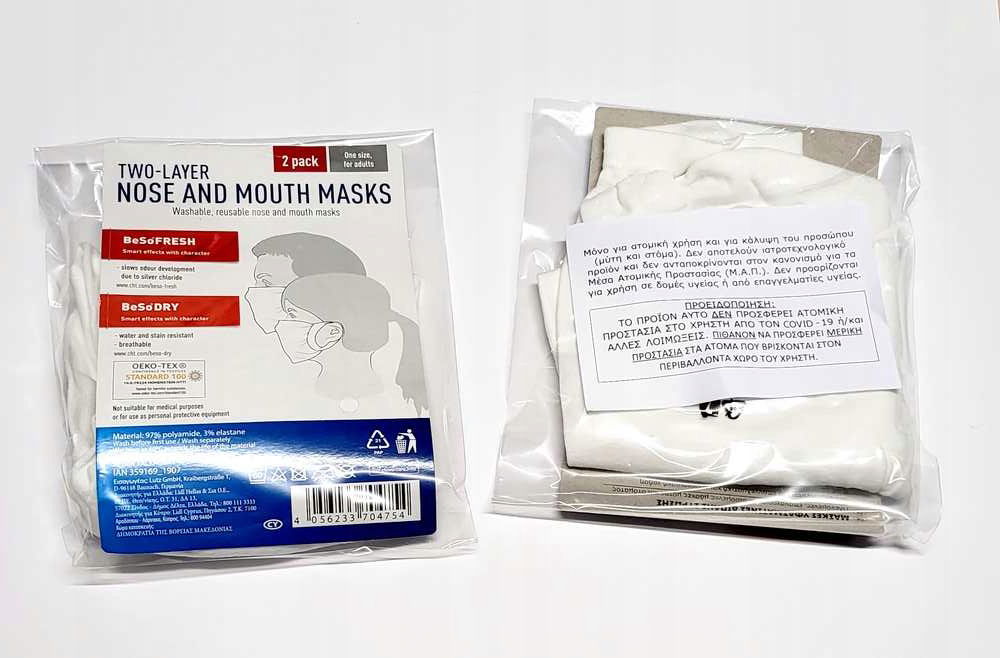 Maseczka ochronna dwuwarstwowa (możliwość włożenia w środek dodatkowego zabezpieczenia typu flizelina), z certyfikowanej wiskozy. Maseczka elastyczna, łagodnie dopasowuje się do twarzy z nieuciskającymi gumkami.