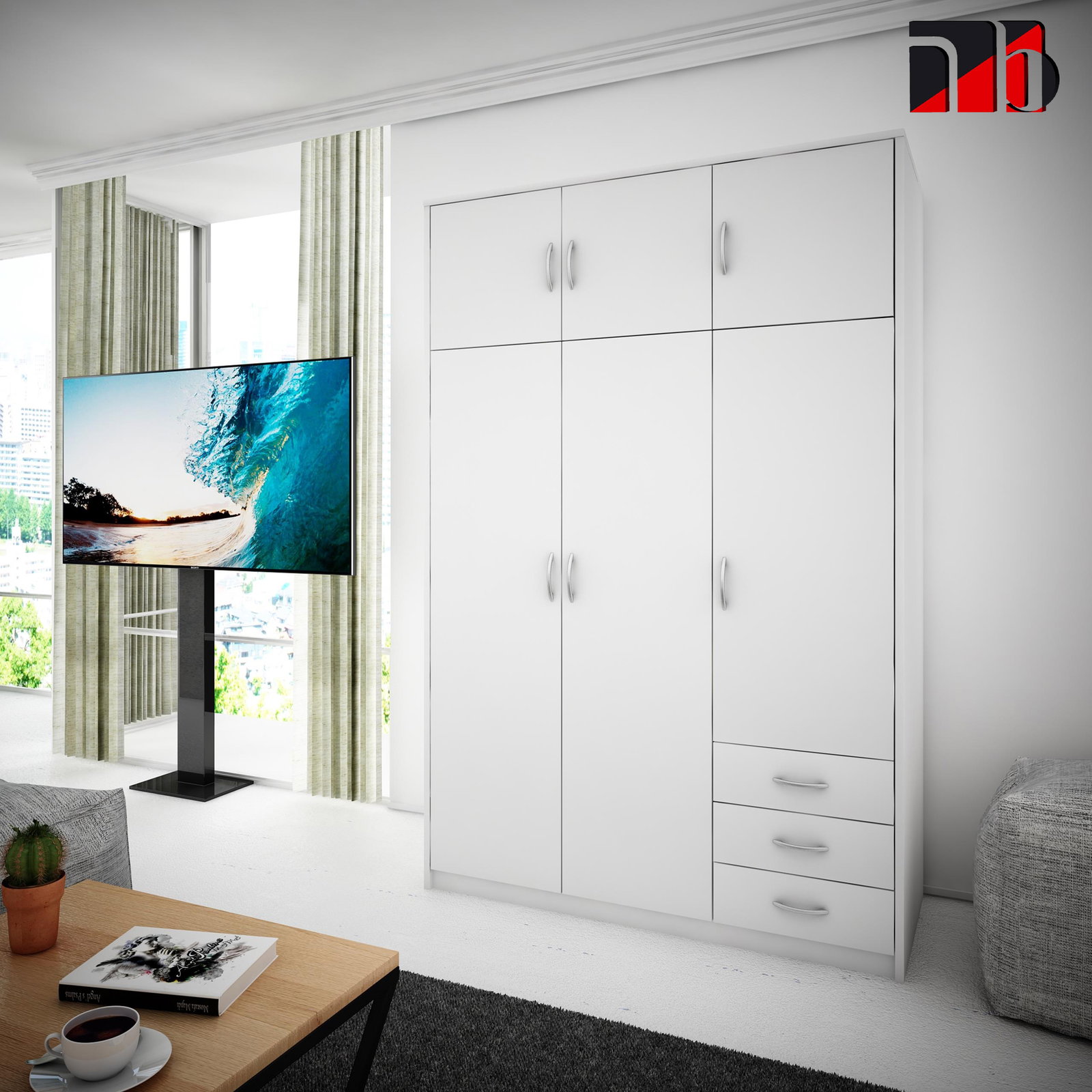 Bestseller Szafa 6 Drzwi 3 Szuflady Biała 193cm x 127cm x 55cm SZ03BIAŁY