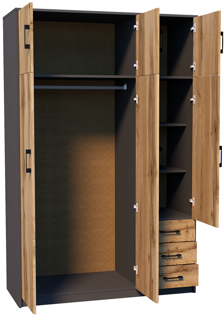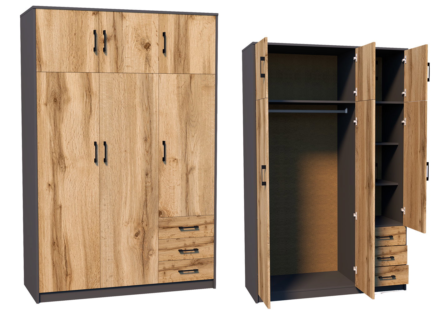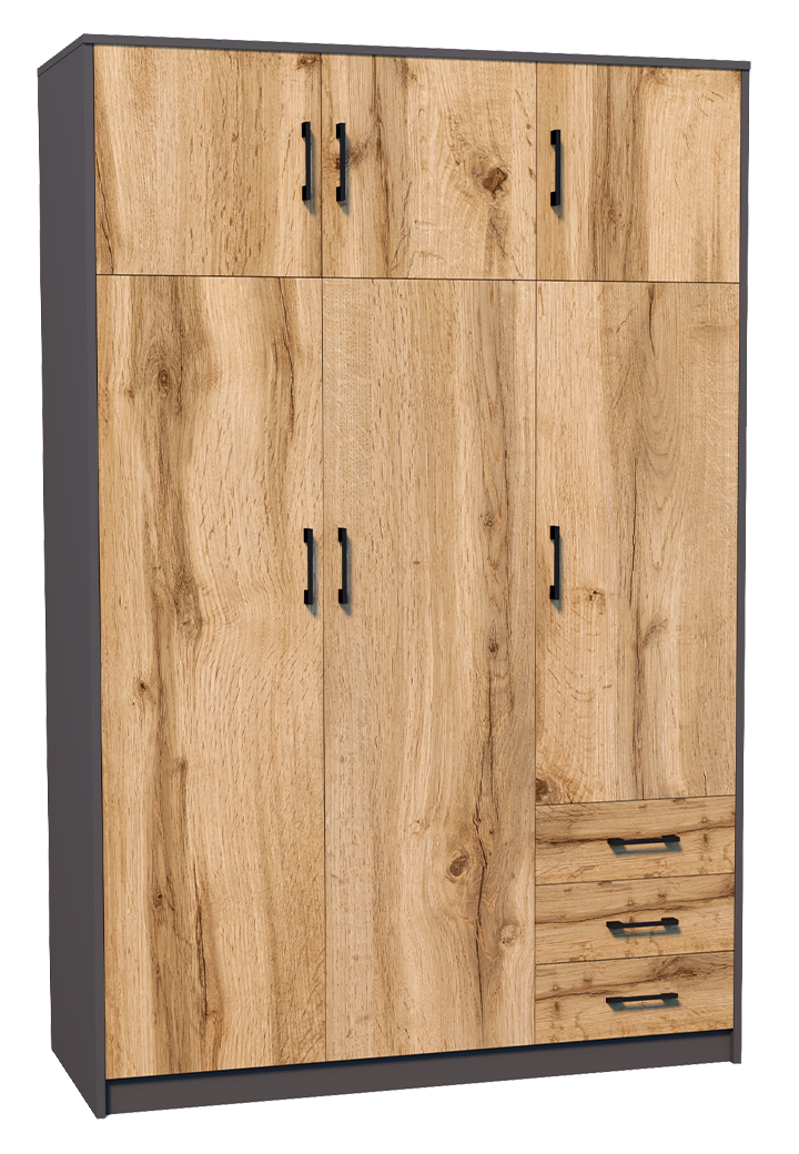 Bestseller Szafa 6 Drzwi 3 Szuflady Grafit/Wotan 193cm x 127cm x 55cm SZ03G/W