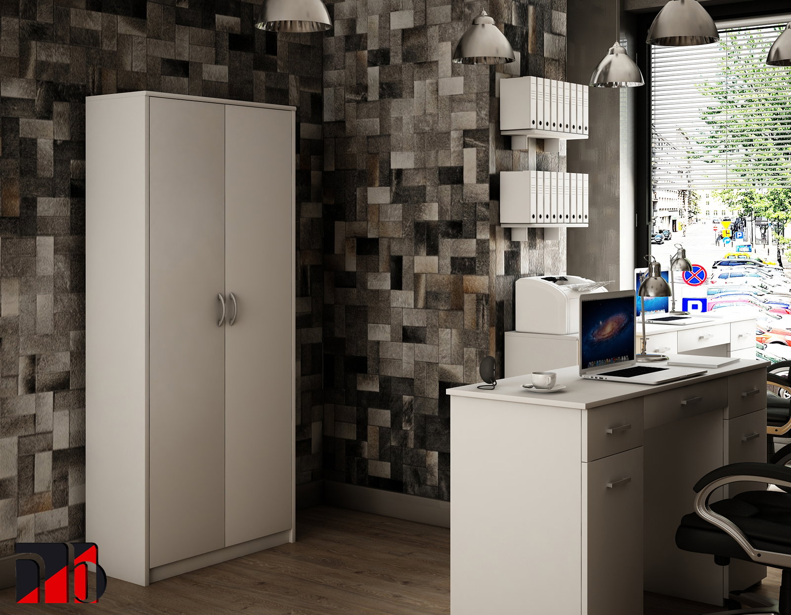 Model wyposażony jest w dwoje drzwi, które pomagają utrzymać estetykę wnętrza i chronią zawartość przed kurzem. Prosta forma oraz matowe wykończenie sprawiają, że regał świetnie komponuje się z nowoczesnymi, klasycznymi i skandynawskimi aranżacjami.