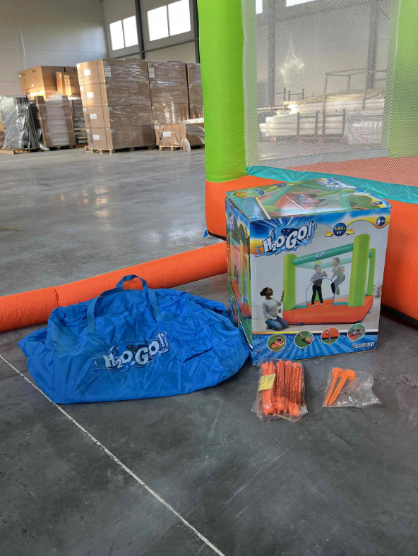 Produkt powystawowy, brak śladów używania. Ostatnie zdjęcia przedstawiają faktyczny wygląd produktu. Wszelkie zabrudzenia mogą wynikać z tego, że nadmuchaliśmy zamek w firmowym magazynie w celu sprawdzenia jego stanu.