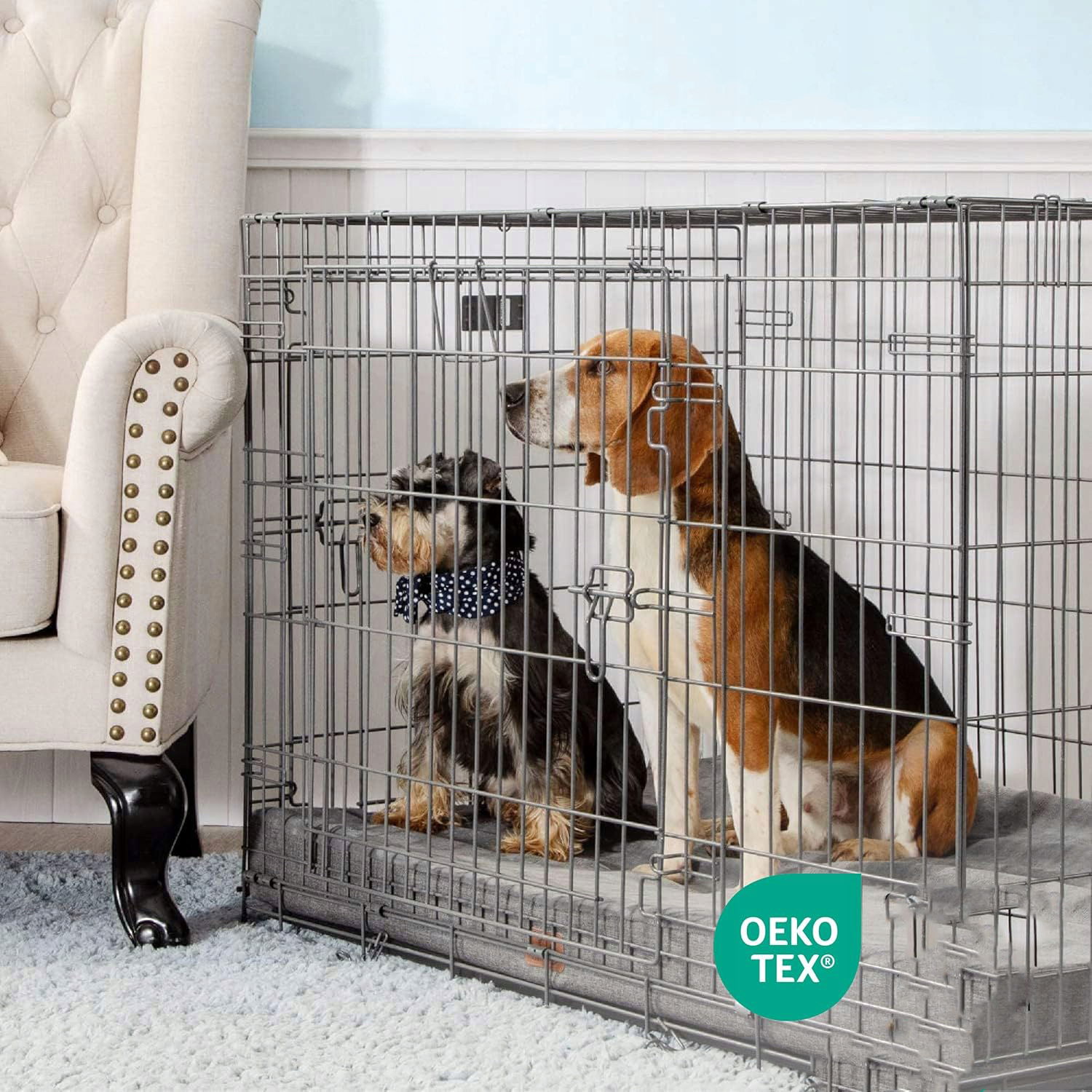 dla psów, kotów lub innych zwierząt domowych o wadze poniżej 13 kg i z prostokątnym materacem o wymiarach 74 x 46 x 8 cm. Pasuje również do każdego podwyższonego legowiska dla psa, skrzynki, budy dla psa lub trampoliny dla psa, do pokoju zamiast zimnej drewnianej podłogi.