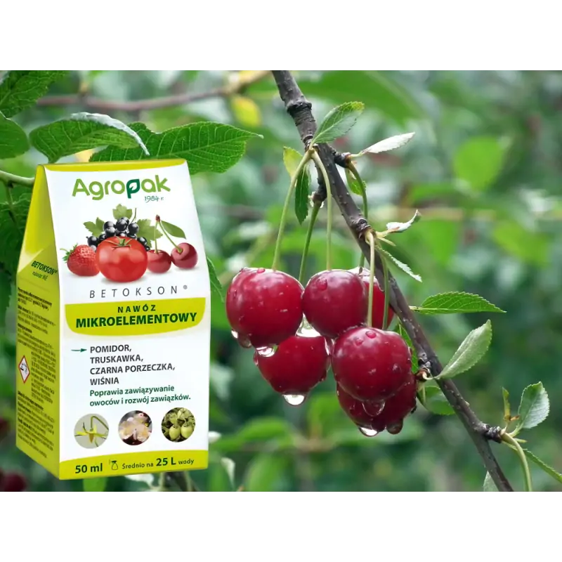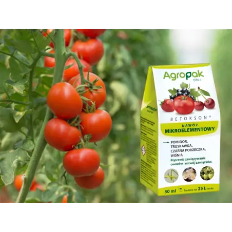 Betokson jest płynnym nawozem mikroelementowym do stosowania w uprawie pomidora, truskawki, porzeczki czarnej oraz wiśni. Nawóz poprawia zawiązywanie i sprzyja prawidłowemu rozwojowi zawiązków. W efekcie takiego działania, nawóz Betokson przyczynia się do wzrostu ilości i jakości plonu.
