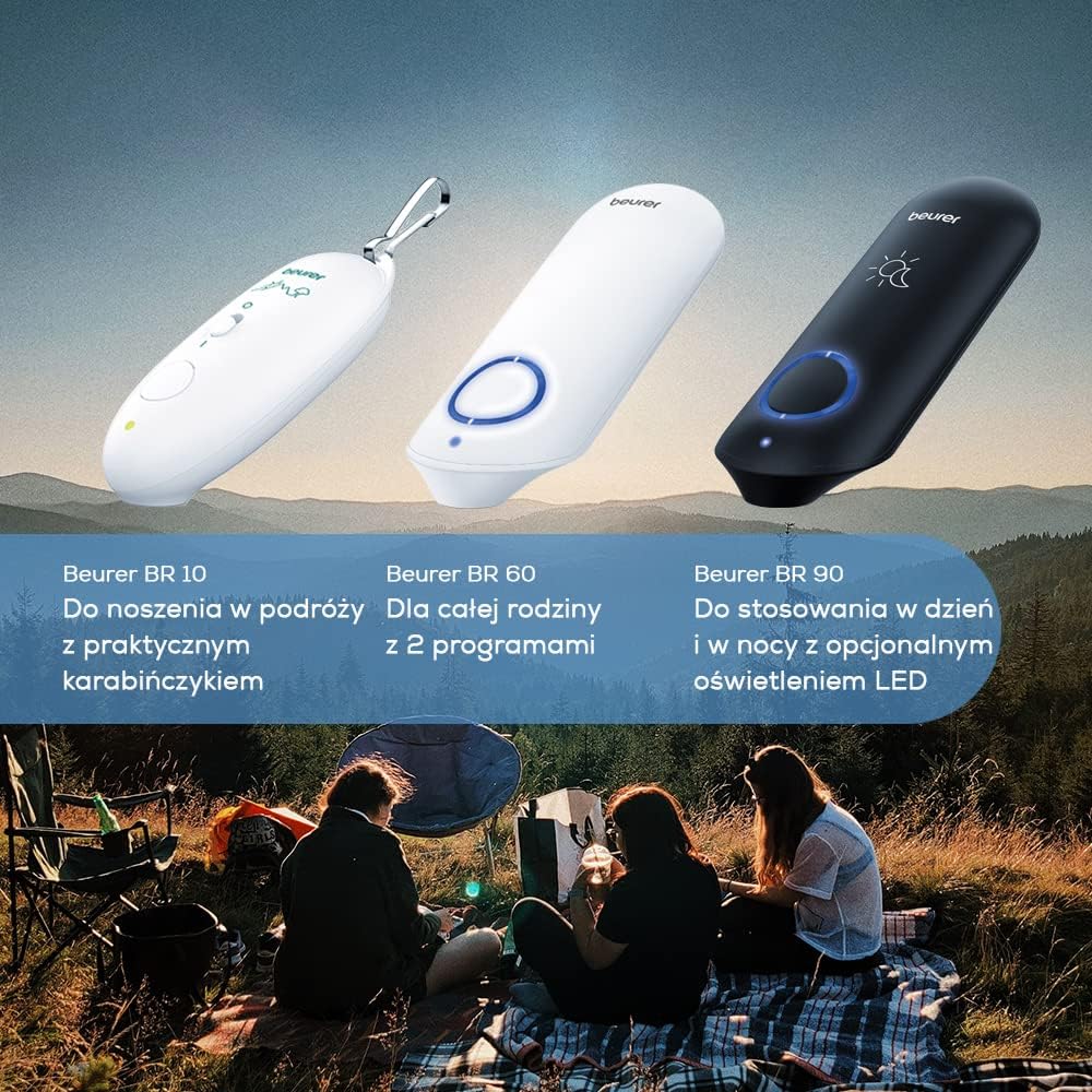 Kompaktowy design sprawia, że Beurer BR 90 jest nieodzownym towarzyszem biwaków, grillowania czy festiwali. Niezastąpione wsparcie w każdej sytuacji na świeżym powietrzu.