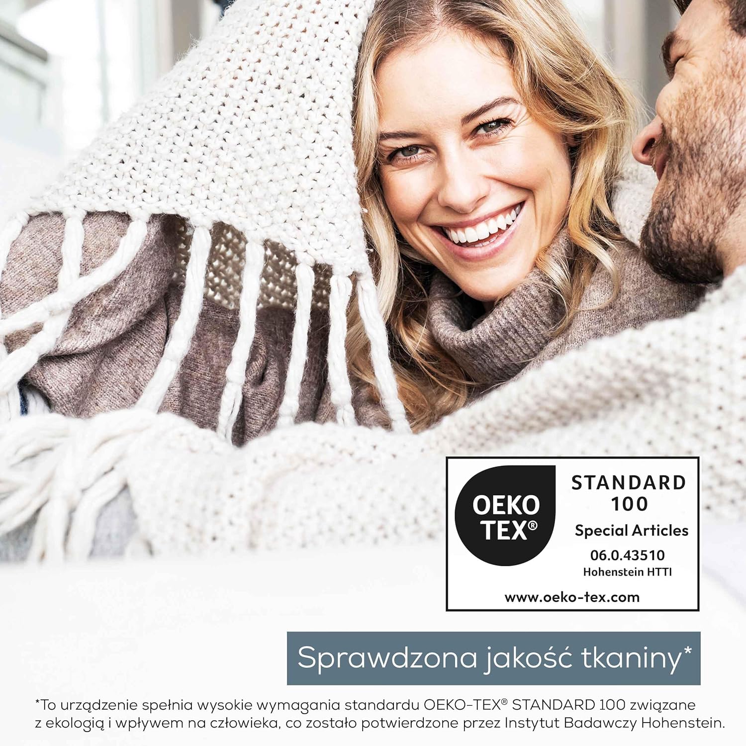 ogrzewany koc spełnia wysokie wymagania ekologiczne dla ludzi zgodnie z normą OEKO-TEX (R) 100, co zostało potwierdzone przez instytut badawczy Hohenstein