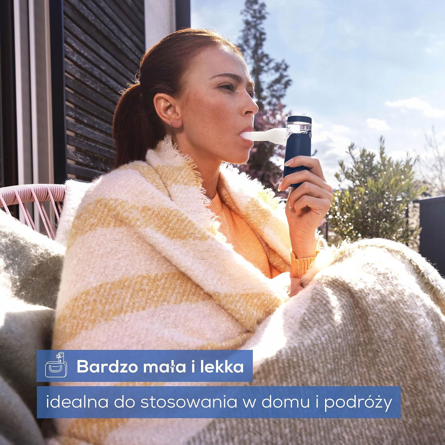 W PODRÓŻY: dzięki lekkiej, kompaktowej konstrukcji i łatwemu do ładowania akumulatorowi inhalator jest optymalnym towarzyszem w domu i w podróży