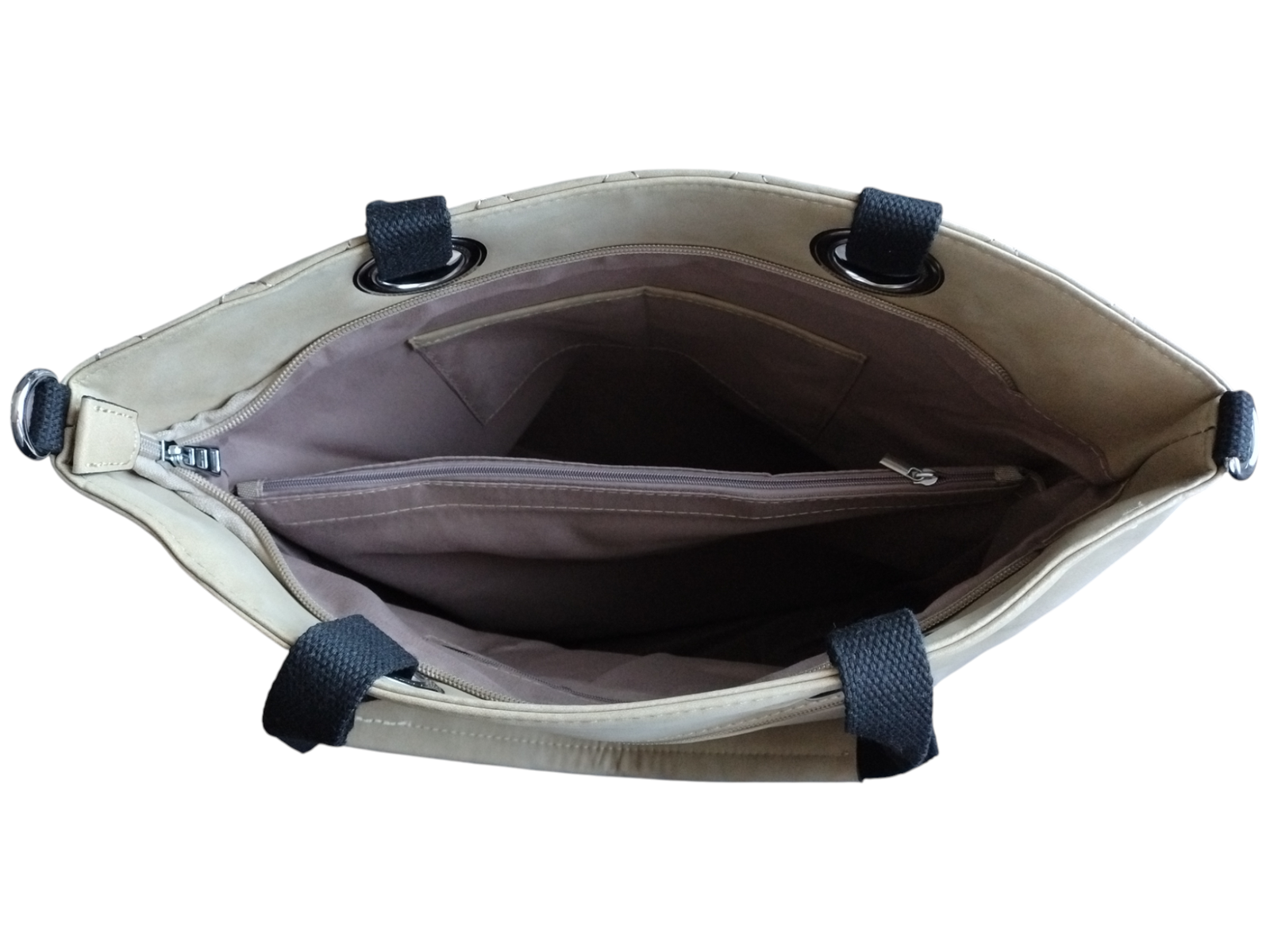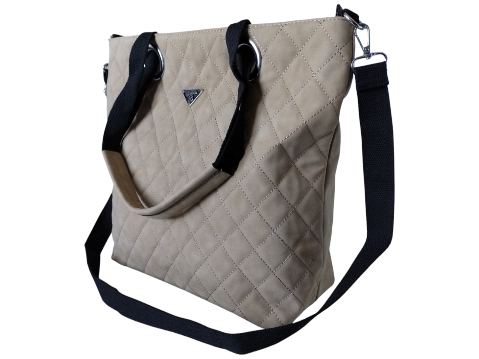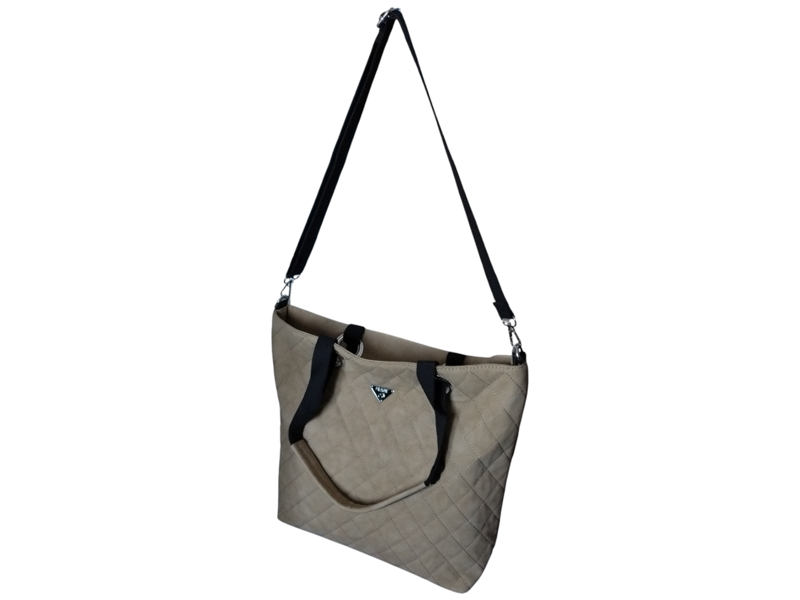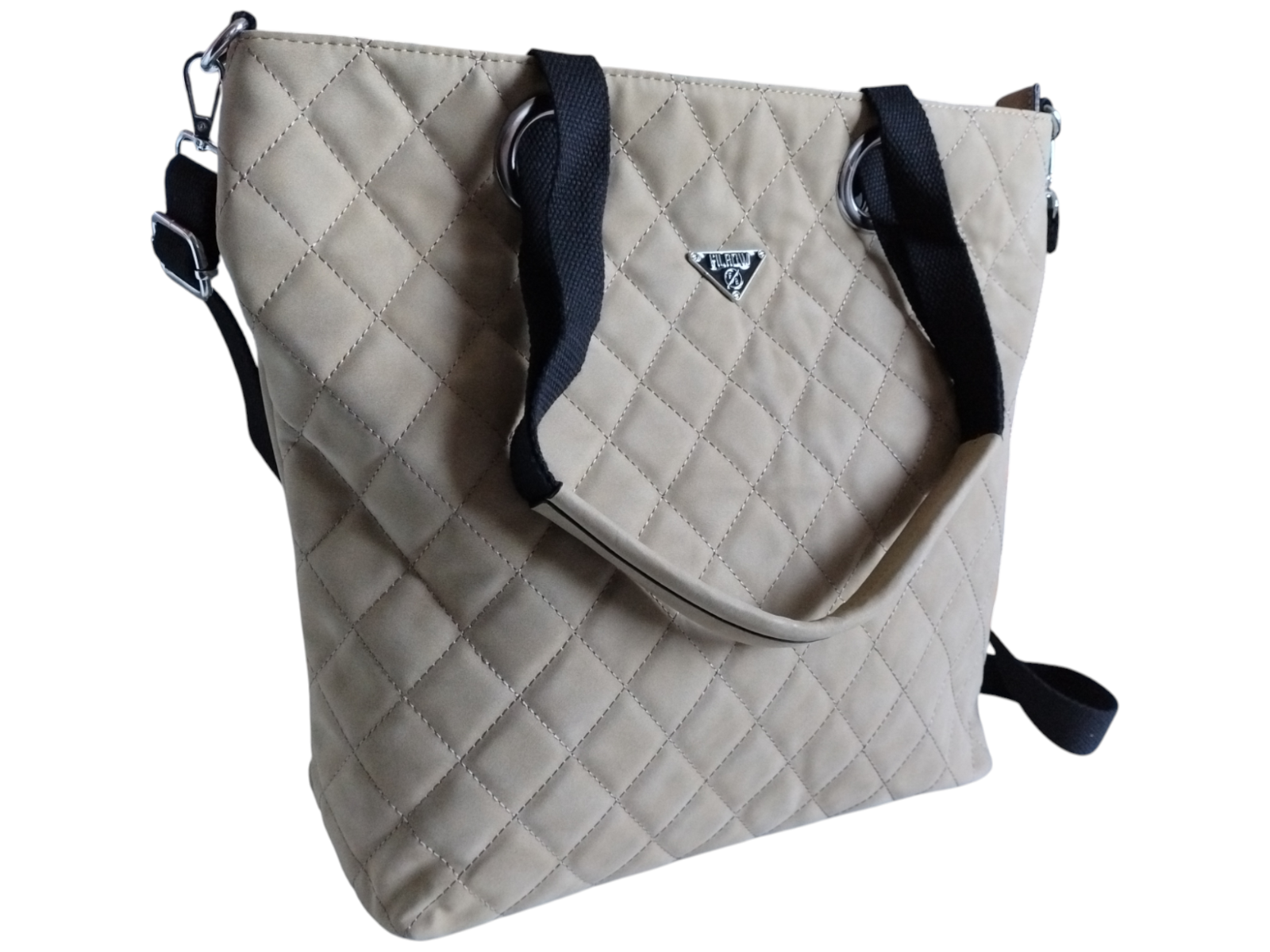 Beżowa Torebka Shopper Pikowana Damska Na Ramię Duża Pojemna A4