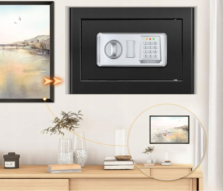 - ✴️Montaż na ścianie - ten sejf ścienny ma nawiercone otwory z tyłu (z 4 standardowymi śrubami rozszerzającymi), a sejf ścienny można łatwo zamontować na ścianie. Wyjmowany regał pomaga w łatwym umieszczeniu wartościowych przedmiotów w razie potrzeby. Sejf jest wyposażony w inteligentny czujnik światła umożliwiający dostęp w nocy. Instalacja sejfu może zwiększyć bezpieczeństwo wartościowych przedmiotów.