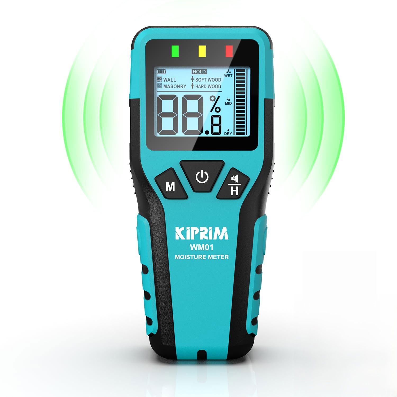 Kiprim WM01 Bezpinowy wilgotnościomierz ścienny do drewna, ścian, muru - precyzyjny, nieniszczący pomiar z 4 trybami, zatrzymaniem danych i wyciszeniem