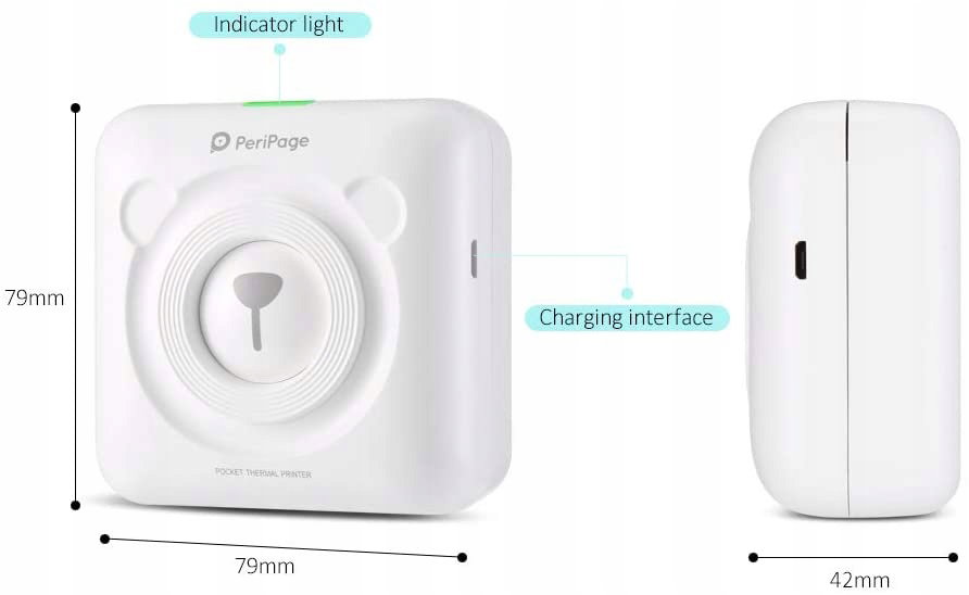 Dzięki technologii druku termicznego i wysokiej jakości głowicy drukującej przyjmuje papier termiczny zamiast atramentu, jest zwykle cichszy, szybszy i bardziej energooszczędny, obsługuje szybkie ładowanie USB.