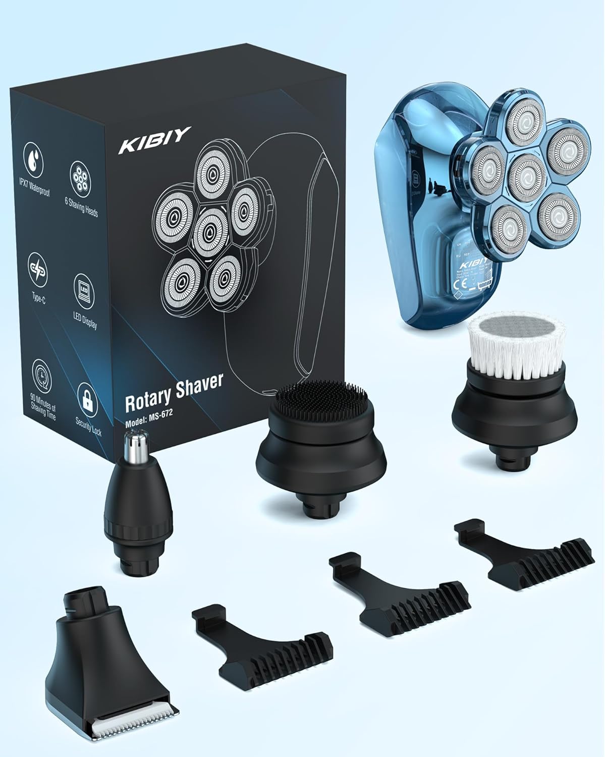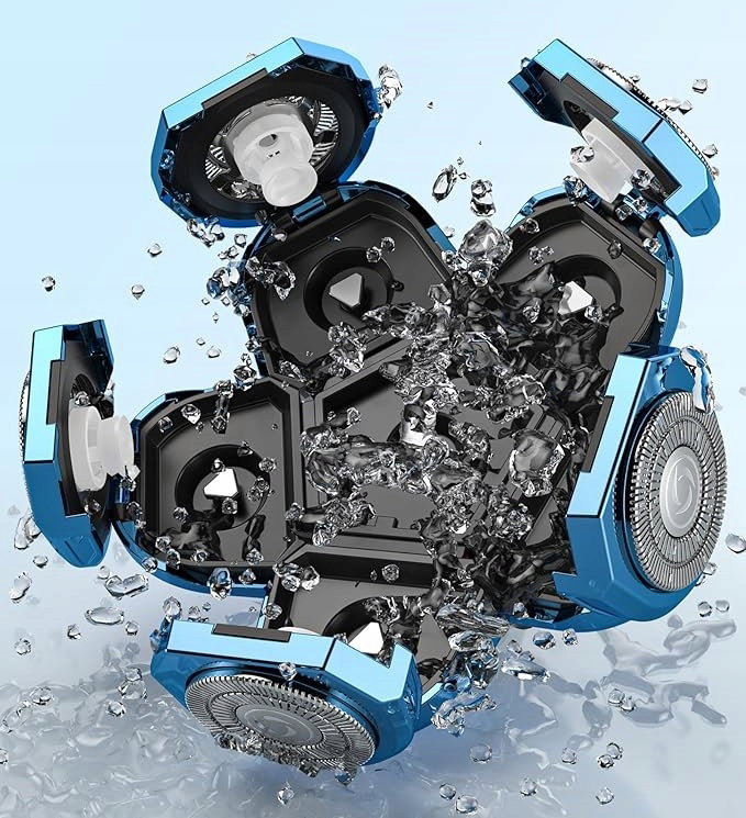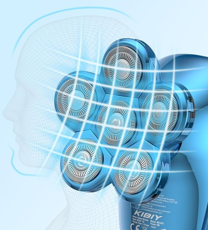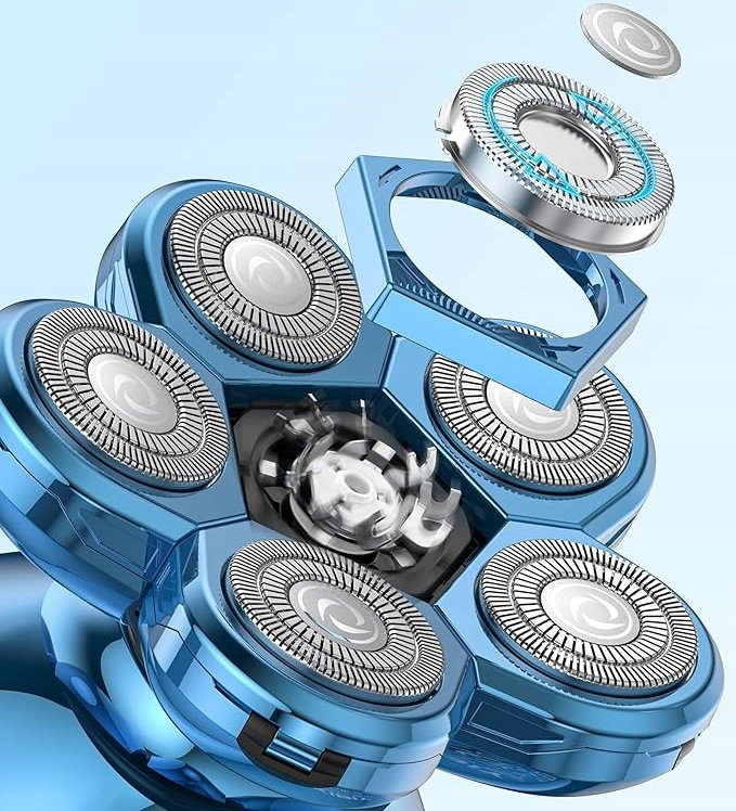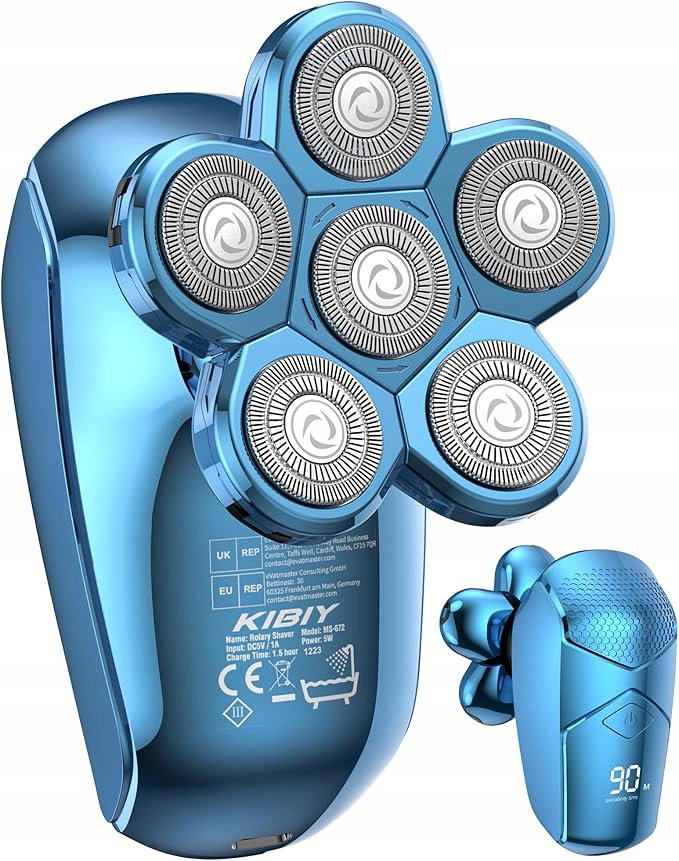 Golarka elektryczna Kibiy 5 w 1 została zaprojektowana z myślą o mężczyznach poszukujących wysokiej jakości urządzenia do pielęgnacji głowy i twarzy. Model ten wyróżnia się 6 obrotowymi głowicami golącymi, które dopasowują się do kształtu głowy i twarzy, zapewniając dokładne, szybkie i równomierne golenie. Podwójna siatka ochronna minimalizuje ryzyko podrażnień i chroni skórę przed uszkodzeniami.