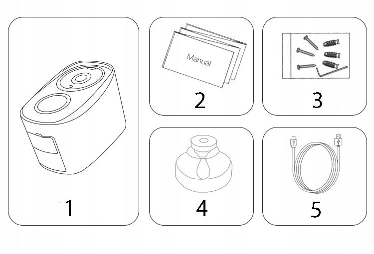 - Przewód USB do ładowania kamery
