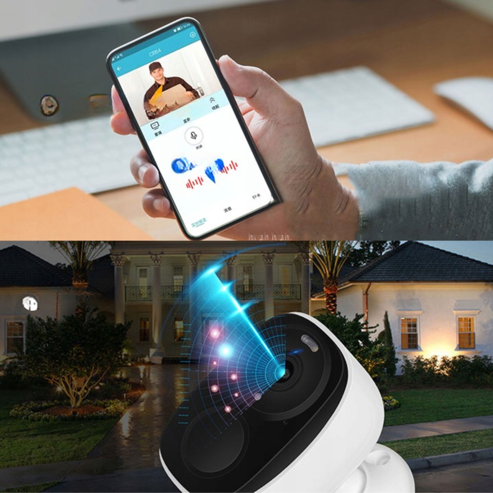 Montujesz kamerę przed wejściem do domu, do drzwi podchodzi kurier z paczką, dostajesz powiadomienie w aplikacji kamery o wykryciu ruchu, rozmawiasz z kurierem poprzez wbudowany w kamerę głośniki i mikrofon