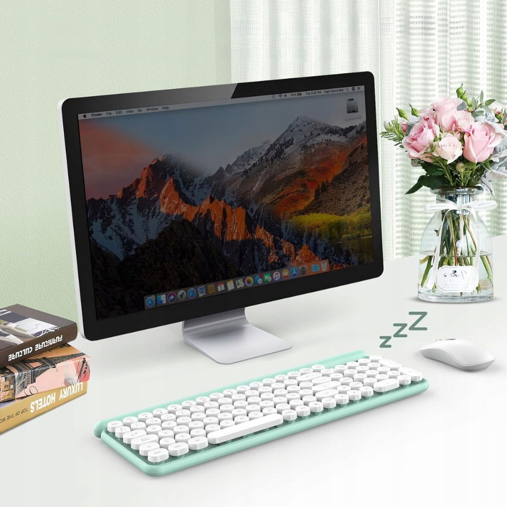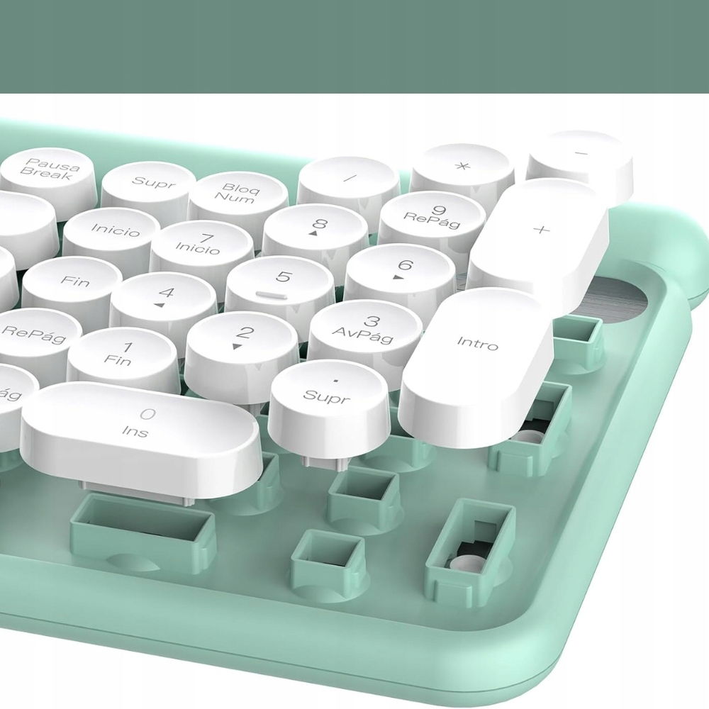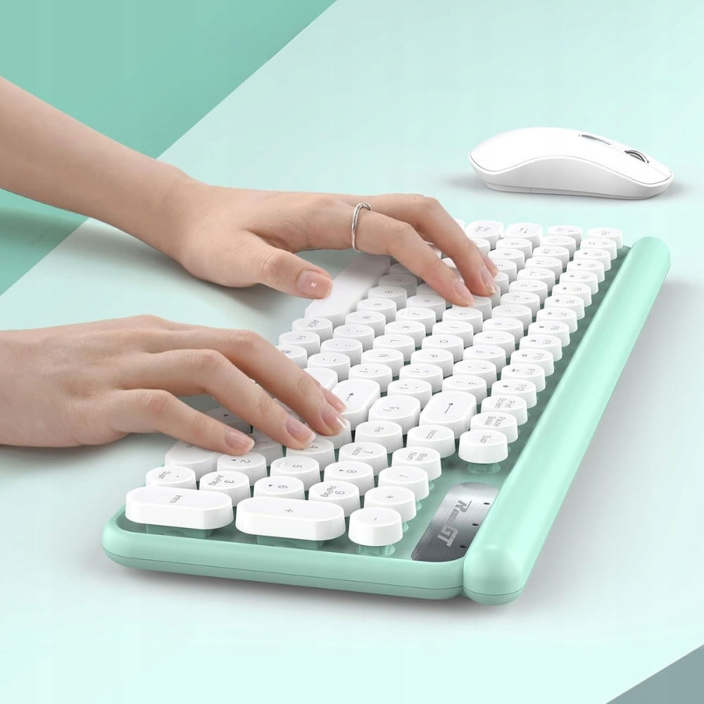 Zestaw wyróżnia się estetycznym kolorem miętowym, który nadaje stanowisku pracy nowoczesny i elegancki wygląd. Klawiatura posiada klawisze inspirowane klasyczną maszyną do pisania, co zapewnia komfortowe i płynne pisanie.
