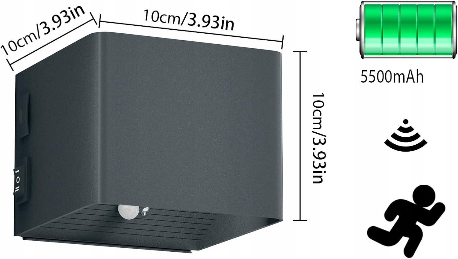 Bezprzewodowa lampa ścienna LED z czujnikiem ruchu - kinkiet 3000K ANTRACYT