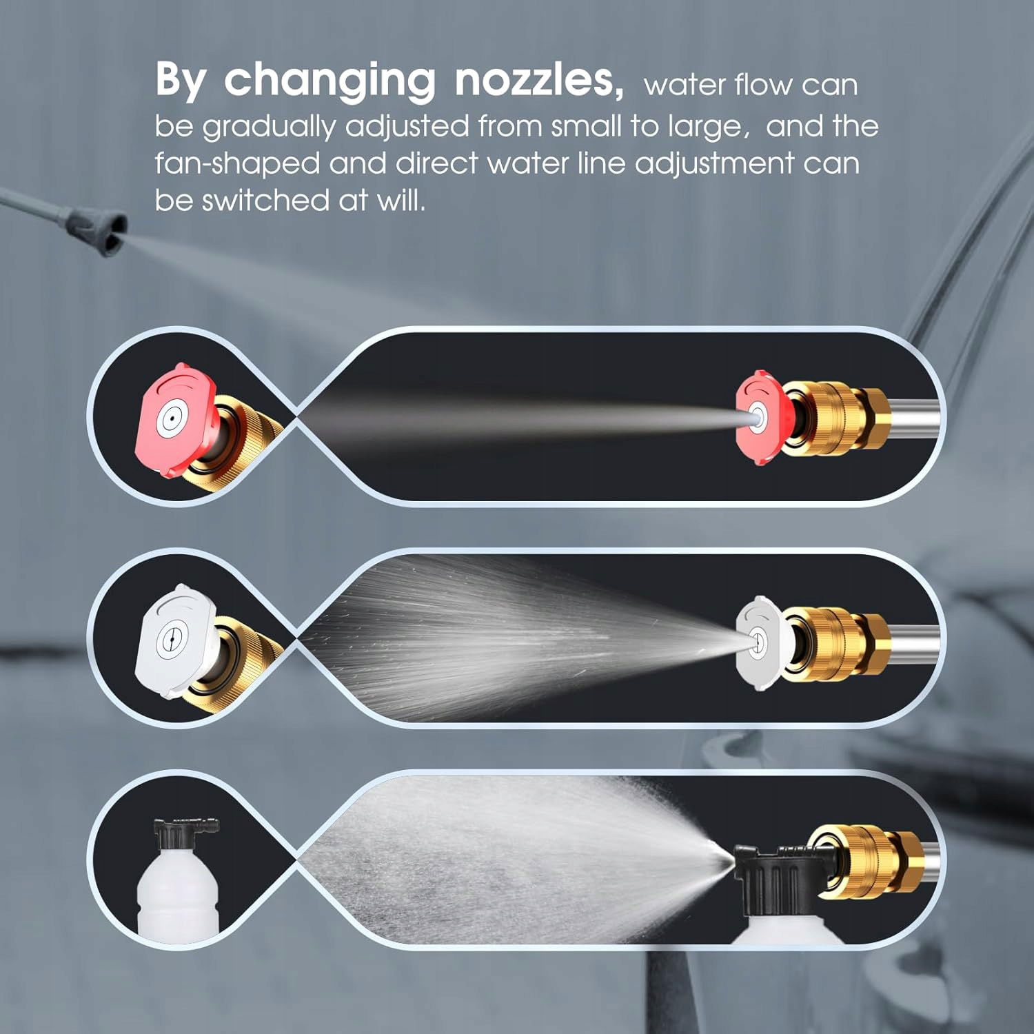 Mocny pełny miedziany silnik z automatycznym wyłączaniem i uruchamianiem / zatrzymywaniem. Przenośny, samozasysający, szybszy i mocniejszy, wbudowany filtr drobny ze stali nierdzewnej, wydajna i głęboka filtracja zanieczyszczeń w wodzie. Może zmieniać rodzaj wody zgodnie z potrzebami, zmieniając dysze, przepływ wody można stopniowo regulować z małego na duży, a ustawienie rurki wodnej w kształcie wentylatora i bezpośredniego można w razie potrzeby przełączać. Nasz bezprzewodowy środek do czyszczenia pod wysokim ciśnieniem jest lekki, bezprzewodowy, łatwy w montażu, demontażu i przenoszeniu, możesz go używać w dowolnym miejscu i czasie. Nadaje się do nawadniania ogrodu, nawadniania rolnictwa, mycia samochodów, czyszczenia gospodarstwa domowego oraz narożników i pęknięć, które są trudne do ręcznego czyszczenia.