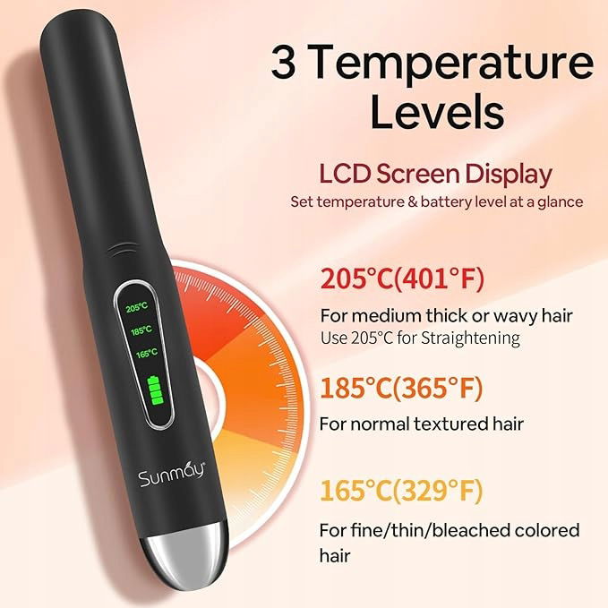 - LEKKI I PRZENOŚNY --- Prostownica SUNMAY ma dużą baterię 4800 mAh i 3 regulowane temperatury. Super mini design, rozmiar kieszeni 21,5 cm (8,5 cala) moż łatwo umieścić w torebce lub walizce, aby nosić, dzięki czemu Twoje piękno moż zobaczyć wszędzie! Nadaje się do podróży, spotkań awaryjnych, podróży służbowych, imprez, prezentów.