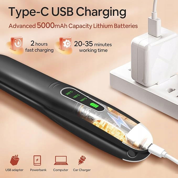 SUNMAY Voga bezprzewodowa prostownica do włosów i lokówka 2 w 1, ładowalna prostownica USB, bezprzewodowa mini prostownica podróżna z 3 regulowanymi temperaturami, akumulator 5000 mA (czarna)