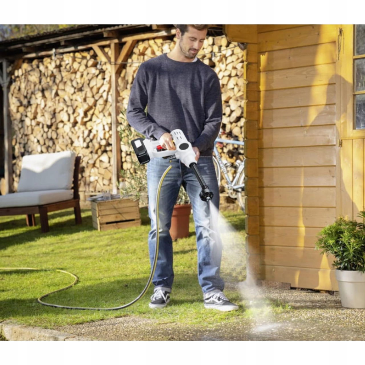 ✅ Wysokie ciśnienie – skutecznie usuwa brud, błoto i kurz z pojazdów, kostki brukowej czy mebli ogrodowych.