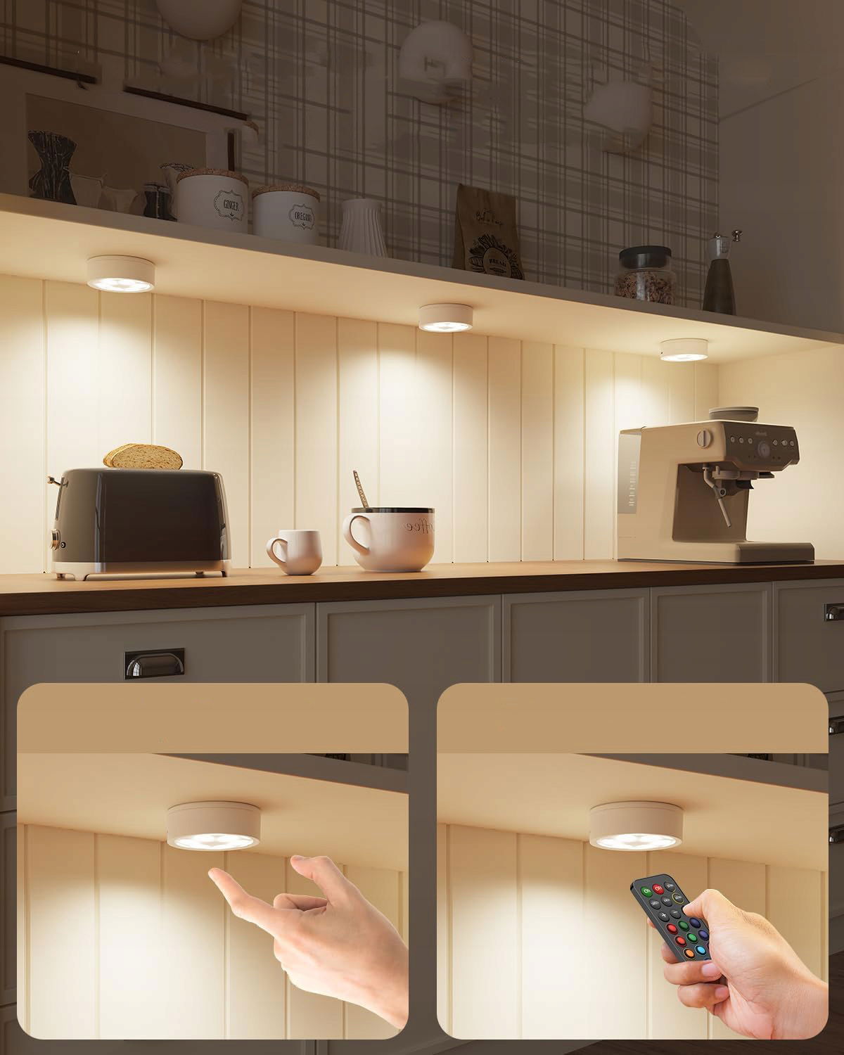 Bezprzewodowe lampy z pilotem, kolorowe RGB, oświetlenie szafki, schodów