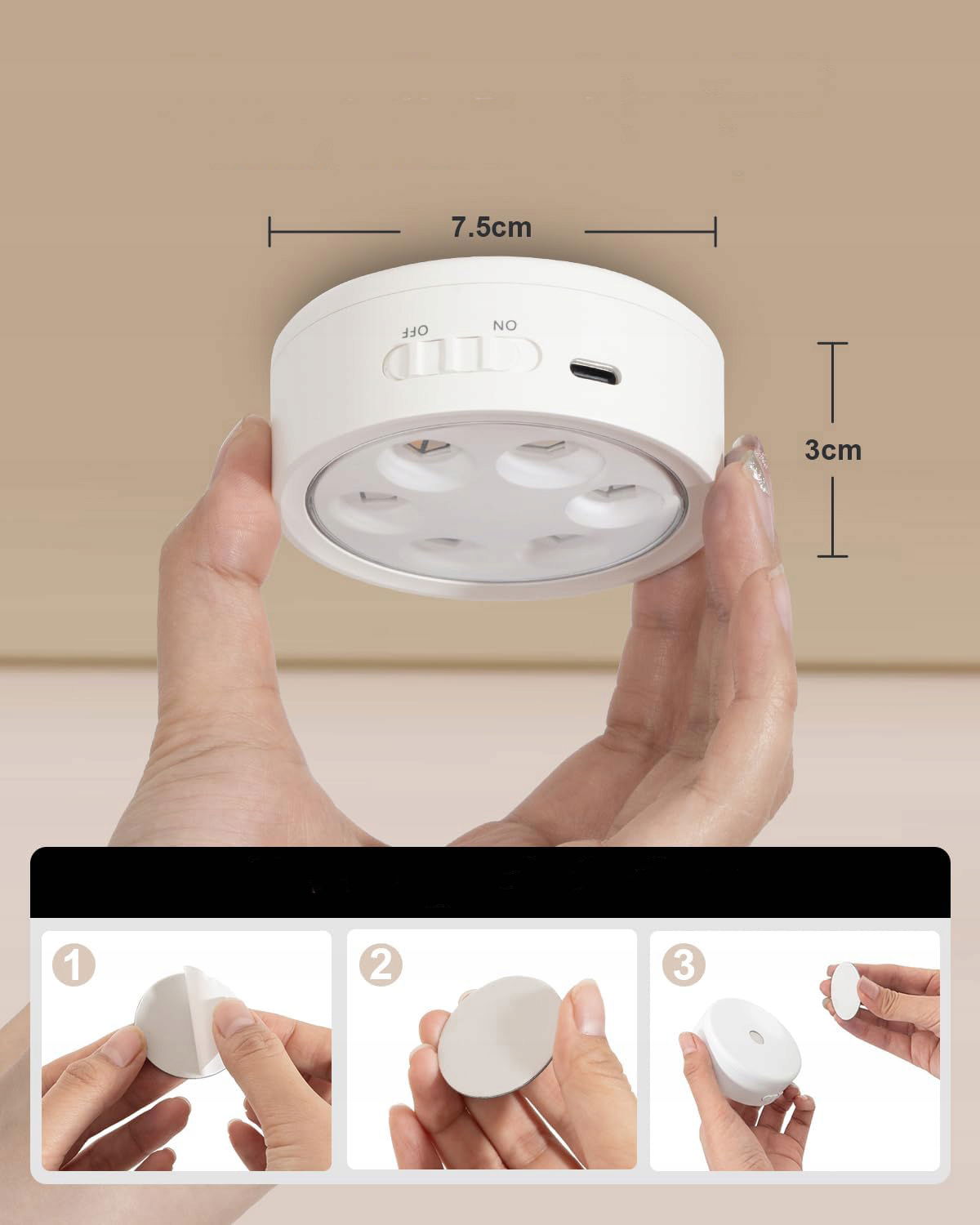 Lampę można zamontować na dwa sposoby. Wbudowany magnes umożliwia szybkie przymocowanie do metalowych powierzchni, a dołączona samoprzylepna płytka montażowa pozwala zamocować lampę praktycznie w dowolnym miejscu bez wiercenia.