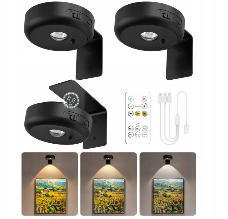 Bezprzewodowe oświetlenie obrazów 2200 mAh, akumulatorowe, z pilotem