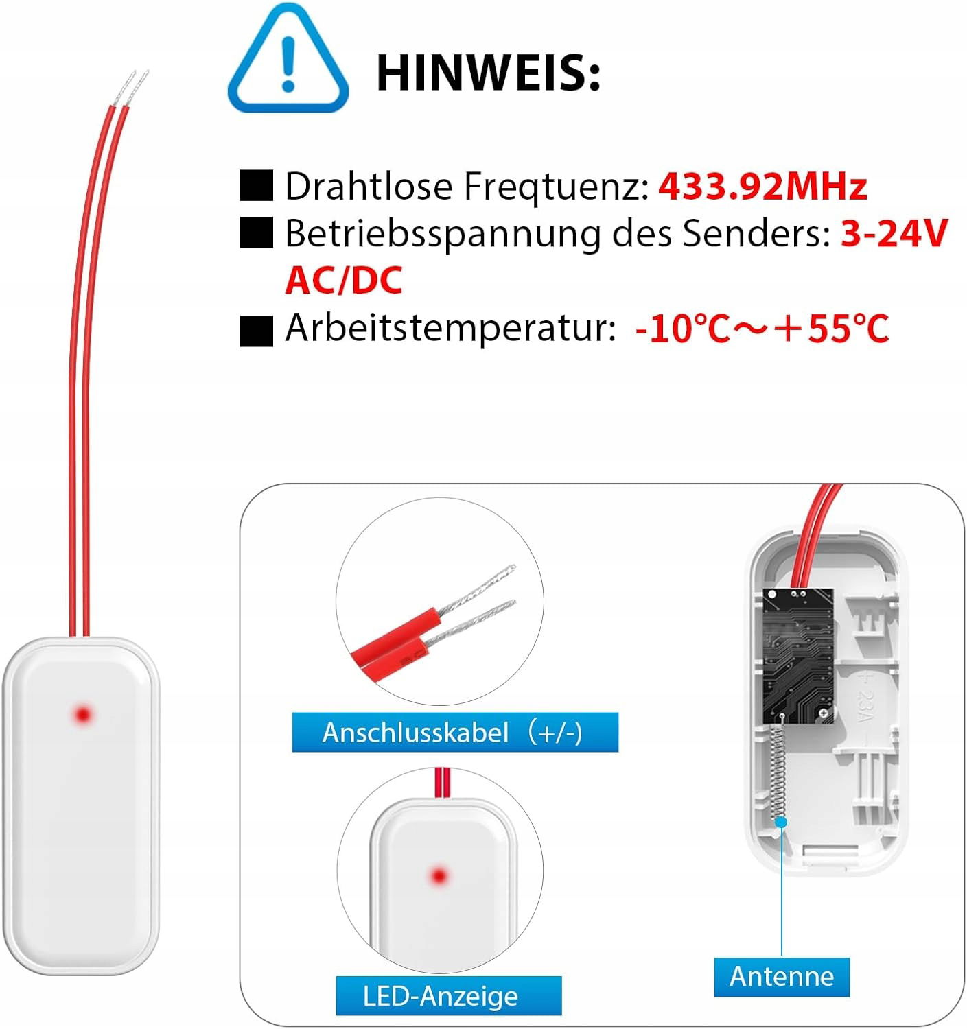 Łatwa i szybka integracja z dowolnym istniejącym systemem dzwonków do drzwi, nadajnik radiowy PHYSEN WET02 do dzwonków/dzwonków elektronicznych, elektromechanicznych i mechanicznych.