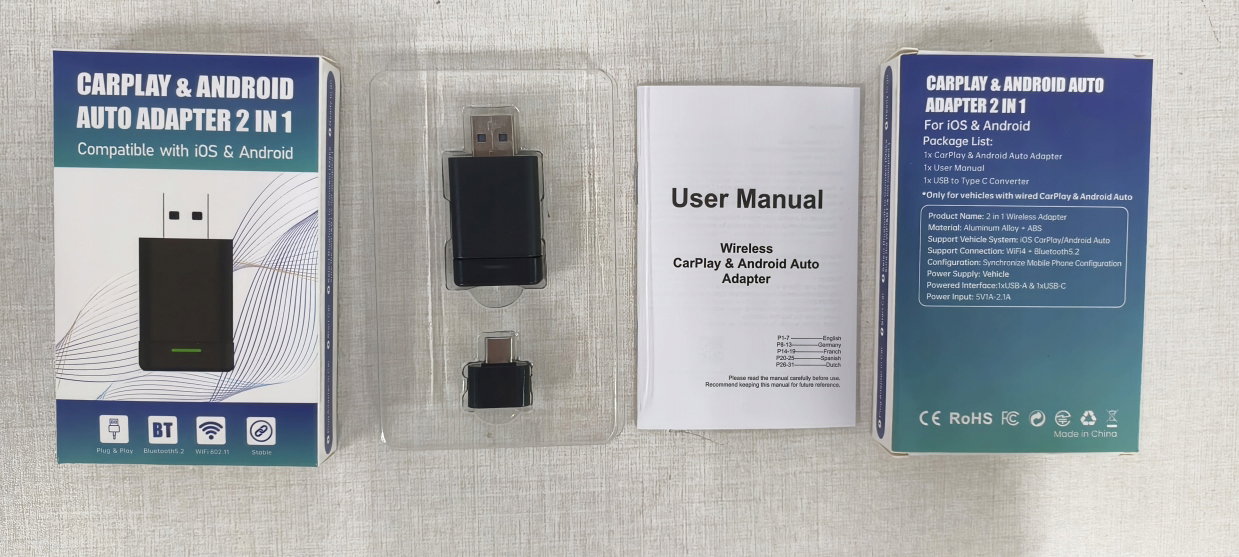 Bezprzewodowy adapter Carplay 2 w 1 i adapter Android Auto