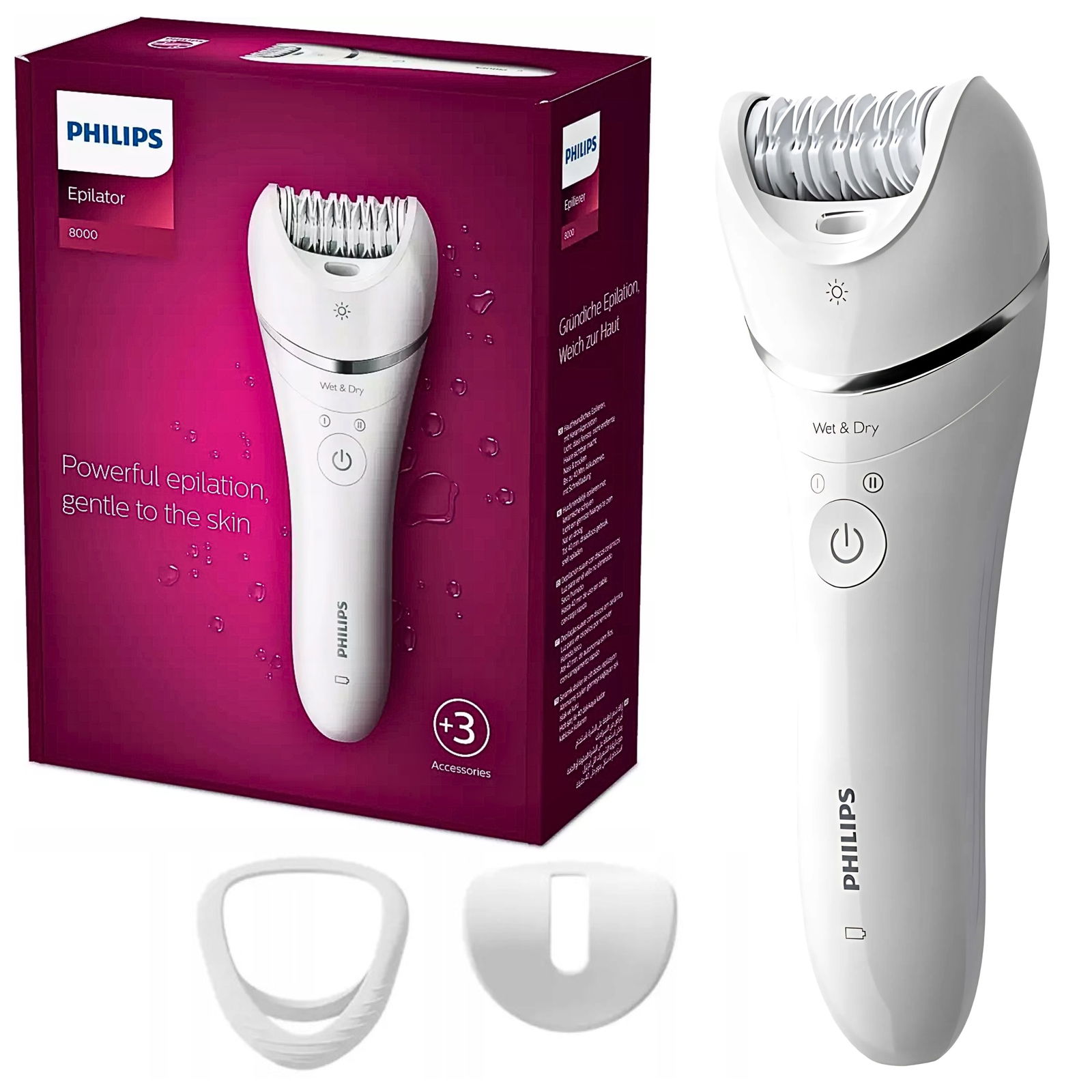 - Depilator Philips z serii 8000 zapewnia dokładną, a jednocześnie delikatną depilację, dzięki czemu pozwala uzyskać gładkość dolnych partii obu nóg w zaledwie 10 minut.