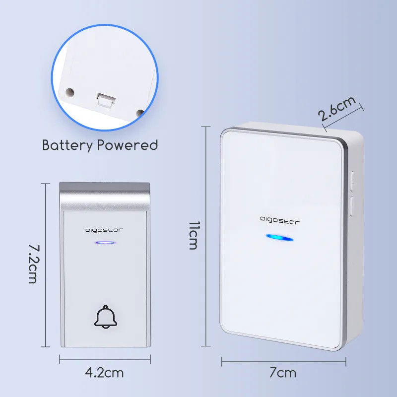 Elegancki styl Nowe wrażenia. Bezprzewodowa konstrukcja. Wyśmienity wygląd. 3 poziomy głośności, 36 dzwonków. Transmisja na odległość do 150 m. Wodoodporna konstrukcja. Wiele funkcji. Dzwonek to szczegół, którego nie można zignorować w dekoracji domu i to on jest pierwszym wrażeniem gości podczas wizyty. Nowy bezprzewodowy dzwonek do drzwi o doskonałej wydajności, eleganckim wyglądzie, przełamujący tradycyjne ograniczenia dzwonka do drzwi, brak sieci, brak problemów z okablowaniem, zapewnia nowe wrażenia z użytkowania. dla konsumentów. Odbiór bezprzewodowy, brak okablowania mogącego uszkodzić ścianę, klej z tyłu, łatwy w montażu, wystarczy kliknąć lekko, aby zadzwonić. Użyj panelu akrylowego, lekki w dotyku, prosty i modny, łuk w czterech rogach, więcej łagodny i elegancki. Już nie monotonne i sztywne, pierścień i głośność można dowolnie wybierać i regulować, czysty i dźwięczny dźwięk, piękne dzwonki. Silna penetracja, silne przeciwdziałanie zakłóceniom, otwarta przestrzeń, odległość w linii prostej w górę do 150 metrów, całkowicie spełniają wymagania użytku domowego. Wyjątkowa wodoodporność IP44, nie zawiedzie na działanie słońca i deszczu. To nie tylko dzwonek do drzwi, ale także pager, mały rozmiar z dużymi funkcjami, jeden przycisk zadzwoń, dogodny do opieki nad członkami rodziny, osobami starszymi/chorymi/kobietami w ciąży.