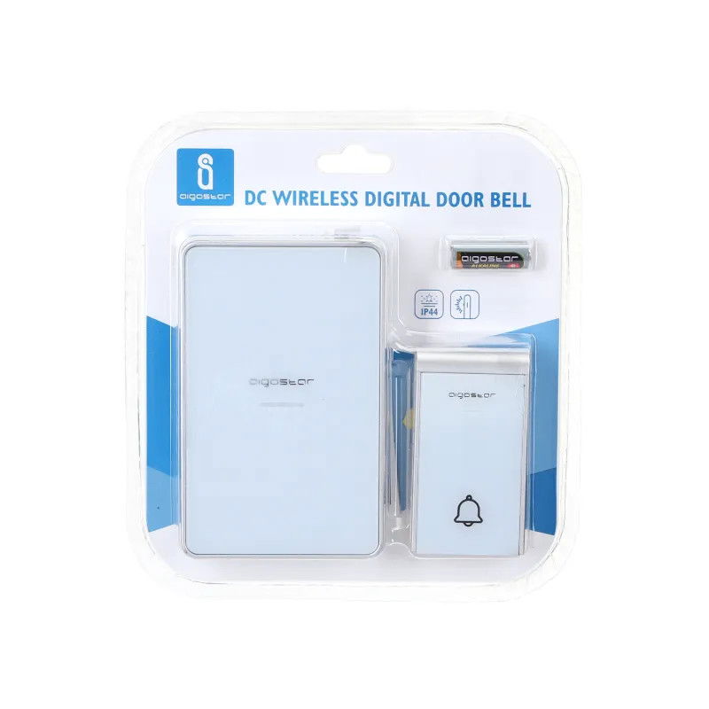Bezprzewodowy dzwonek do drzwi na prąd stały biały i srebrny