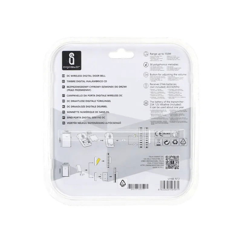 - Opis produktu: Jako pierwsi na rynku zastosowaliśmy panele akrylowe;Super długa odległość sterowania 150 m;Doskonała wodoodporność IP44;36 melodii polifonicznych;Bateria nadajnika: 23A 12V alkaliczna (w zestawie)
