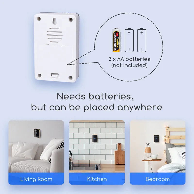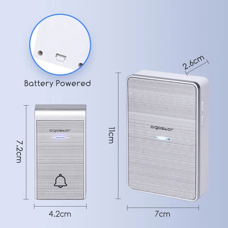 Elegancki styl Nowe wrażenia. Bezprzewodowa konstrukcja. Wyśmienity wygląd. 3 poziomy głośności, 36 dzwonków. Transmisja na odległość do 150 m. Wodoodporna konstrukcja. Wiele funkcji. Dzwonek to szczegół, którego nie można zignorować w dekoracji domu i to on jest pierwszym wrażeniem gości podczas wizyty. Nowy bezprzewodowy dzwonek do drzwi o doskonałej wydajności, eleganckim wyglądzie, przełamujący tradycyjne ograniczenia dzwonka do drzwi, brak sieci, brak problemów z okablowaniem, zapewnia nowe wrażenia z użytkowania. dla konsumentów. Odbiór bezprzewodowy, brak okablowania mogącego uszkodzić ścianę, klej z tyłu, łatwy w montażu, wystarczy kliknąć lekko, aby zadzwonić. Użyj panelu akrylowego, lekki w dotyku, prosty i modny, łuk w czterech rogach, więcej łagodny i elegancki. Już nie monotonne i sztywne, pierścień i głośność można dowolnie wybierać i regulować, czysty i dźwięczny dźwięk, piękne dzwonki. Silna penetracja, silne przeciwdziałanie zakłóceniom, otwarta przestrzeń, odległość w linii prostej w górę do 150 metrów, całkowicie spełniają wymagania użytku domowego. Wyjątkowa wodoodporność IP44, nie zawiedzie na działanie słońca i deszczu. To nie tylko dzwonek do drzwi, ale także pager, mały rozmiar z dużymi funkcjami, jeden przycisk zadzwoń, dogodny do opieki nad członkami rodziny, osobami starszymi/chorymi/kobietami w ciąży.