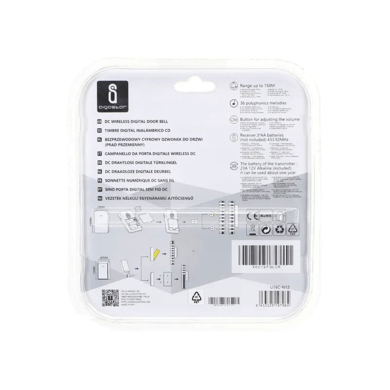 - Opis produktu: Jako pierwsi na rynku zastosowaliśmy panele akrylowe;Super długa odległość sterowania 150 m;Doskonała wodoodporność IP44;36 melodii polifonicznych;Bateria nadajnika: 23A 12V alkaliczna (w zestawie)