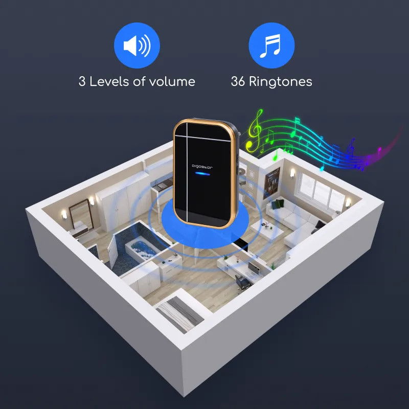 Elegancki styl Nowe wrażenia. Bezprzewodowa konstrukcja. Wyśmienity wygląd. 3 poziomy głośności, 36 dzwonków. Transmisja na odległość do 150 m. Wodoodporna konstrukcja. Różne kombinacje. Wiele funkcji" „Dzwonek to szczegół, którego nie można zignorować w dekoracji domu i to on robi pierwsze wrażenie na gościach podczas ich wizyty. Nowy bezprzewodowy dzwonek do drzwi o doskonałej wydajności, eleganckim wyglądzie, przełamujący tradycyjne ograniczenia dotyczące dzwonków do drzwi, brak sieci, brak problemów z okablowaniem, zapewnij konsumentom nowe doświadczenia związane z użytkowaniem. Odbiór bezprzewodowy, brak okablowania mogącego uszkodzić ścianę, tylna część klejąca, łatwa w montażu, wystarczy kliknąć lekko, aby zadzwonić. Wykorzystaj panel akrylowy, lekki w dotyku, prosty i modny, cztery narożniki mają kształt łuku, są bardziej łagodne i eleganckie. Już nie monotonne i sztywne, pierścień i głośność można dowolnie wybierać i regulować, czysty i dźwięczny dźwięk, piękne dzwonki. Silna penetracja, silne przeciwdziałanie zakłóceniom, otwarte odległość w linii prostej do 150 metrów, całkowicie spełnia wymagania użytku domowego. Wyjątkowa wodoodporność IP44, odporna na działanie słońca i deszczu. Skonfiguruj nadajnik i odbiornik zgodnie z wymaganiami domu, bezprzewodowy dzwonek do drzwi AC jest elastyczny, może być dopasowywany jeden do jednego, jeden do wielu lub wiele do wielu, odpowiedni dla różnych obszarów domu. To nie tylko dzwonek do drzwi, ale także pager, mały rozmiar z dużymi funkcjami, połączenie za pomocą jednego przycisku, wygodne do opieki nad członkami rodziny, osobami starszymi/chorymi/kobietami w ciąży.