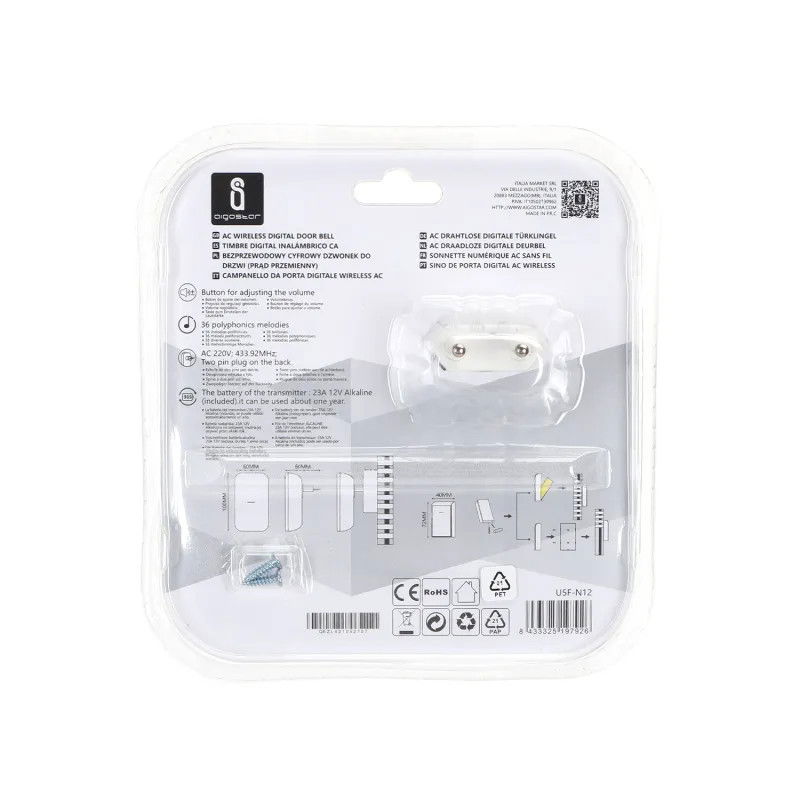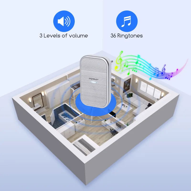 Elegancki styl Nowe wrażenia. Bezprzewodowa konstrukcja. Wyśmienity wygląd. 3 poziomy głośności, 36 dzwonków. Transmisja na odległość do 150 m. Wodoodporna konstrukcja. Różne kombinacje. Wiele funkcji" „Dzwonek to szczegół, którego nie można zignorować w dekoracji domu i to on robi pierwsze wrażenie na gościach podczas ich wizyty. Nowy bezprzewodowy dzwonek do drzwi o doskonałej wydajności, eleganckim wyglądzie, przełamujący tradycyjne ograniczenia dotyczące dzwonków do drzwi, brak sieci, brak problemów z okablowaniem, zapewnij konsumentom nowe doświadczenia związane z użytkowaniem. Odbiór bezprzewodowy, brak okablowania mogącego uszkodzić ścianę, tylna część klejąca, łatwa w montażu, wystarczy kliknąć lekko, aby zadzwonić. Wykorzystaj panel akrylowy, lekki w dotyku, prosty i modny, cztery narożniki mają kształt łuku, są bardziej łagodne i eleganckie. Już nie monotonne i sztywne, pierścień i głośność można dowolnie wybierać i regulować, czysty i dźwięczny dźwięk, piękne dzwonki. Silna penetracja, silne przeciwdziałanie zakłóceniom, otwarte odległość w linii prostej do 150 metrów, całkowicie spełnia wymagania użytku domowego. Wyjątkowa wodoodporność IP44, odporna na działanie słońca i deszczu. Skonfiguruj nadajnik i odbiornik zgodnie z wymaganiami domu, bezprzewodowy dzwonek do drzwi AC jest elastyczny, może być dopasowywany jeden do jednego, jeden do wielu lub wiele do wielu, odpowiedni dla różnych obszarów domu. To nie tylko dzwonek do drzwi, ale także pager, mały rozmiar z dużymi funkcjami, połączenie za pomocą jednego przycisku, wygodne do opieki nad członkami rodziny, osobami starszymi/chorymi/kobietami w ciąży.