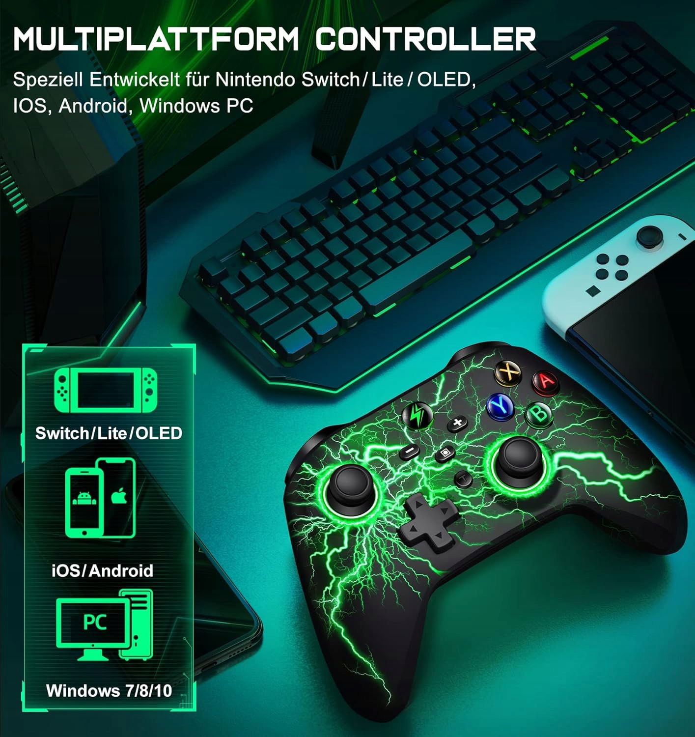 Kontroler Switch Multiplatform: Kontroler Switch do konsoli Switch/Lite/OLED, ergonomicznie zaprojektowany, aby wygodnie trzymać go w dłoni przez dłuższy czas gry. Bezprzewodowy kontroler zapewniający precyzyjne i realistyczne sterowanie, idealny do gier korzystających z trybu TV lub tabletu konsoli Switch/Lite/OLED. Obsługuje gry iOS MFi, model Android HID oraz komputery z systemem Windows 7/8/10 (uwaga: połączenie z komputerem tylko za pomocą kabla USB).