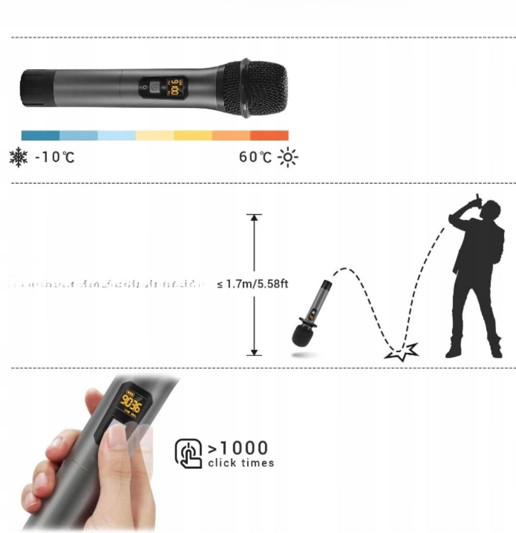 Idealny do profesjonalnego / domowego KTV, występów scenicznych, śpiewu, spotkań biznesowych, imprez rodzinnych lub przyjaciół, występów na świeżym powietrzu itp.