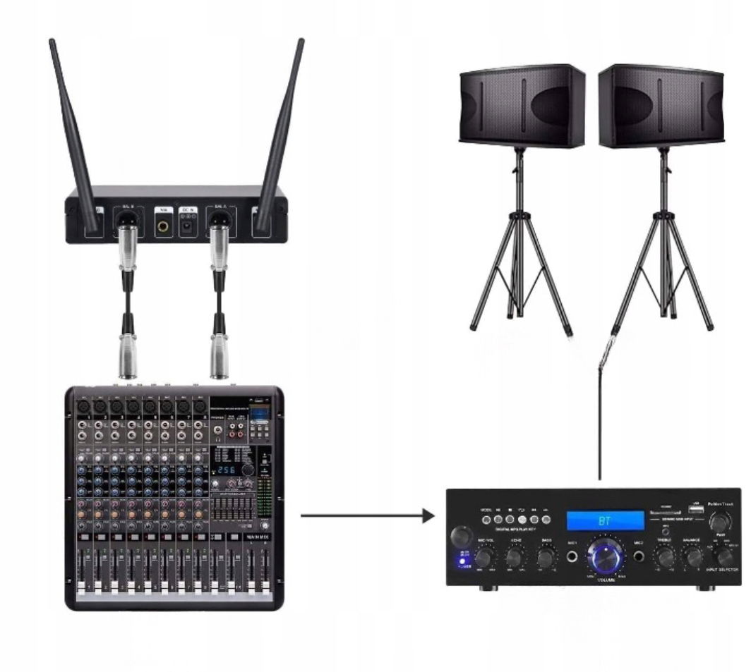 ✔ Kompletny zestaw – zawiera dwa mikrofony ręczne, odbiornik i akcesoria.