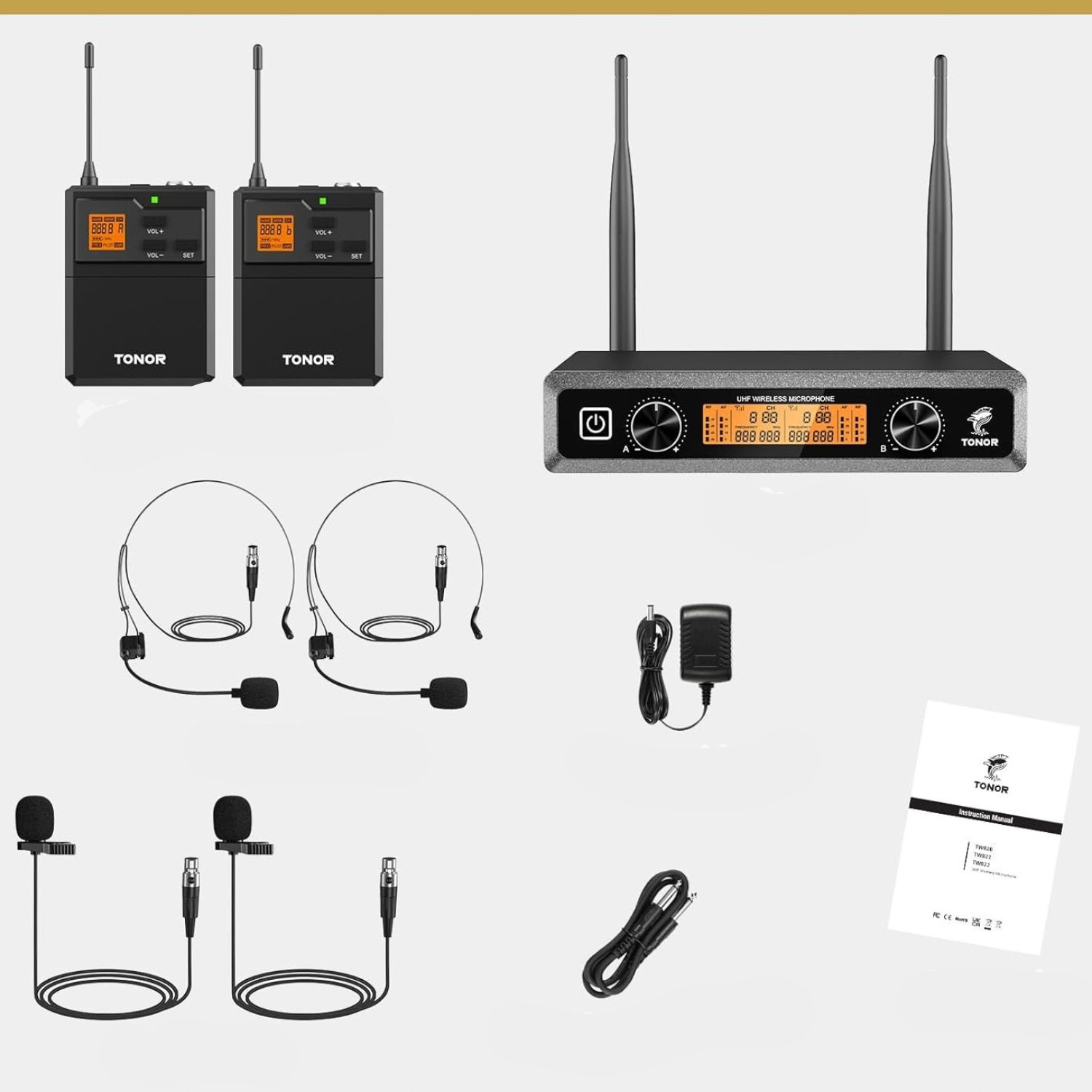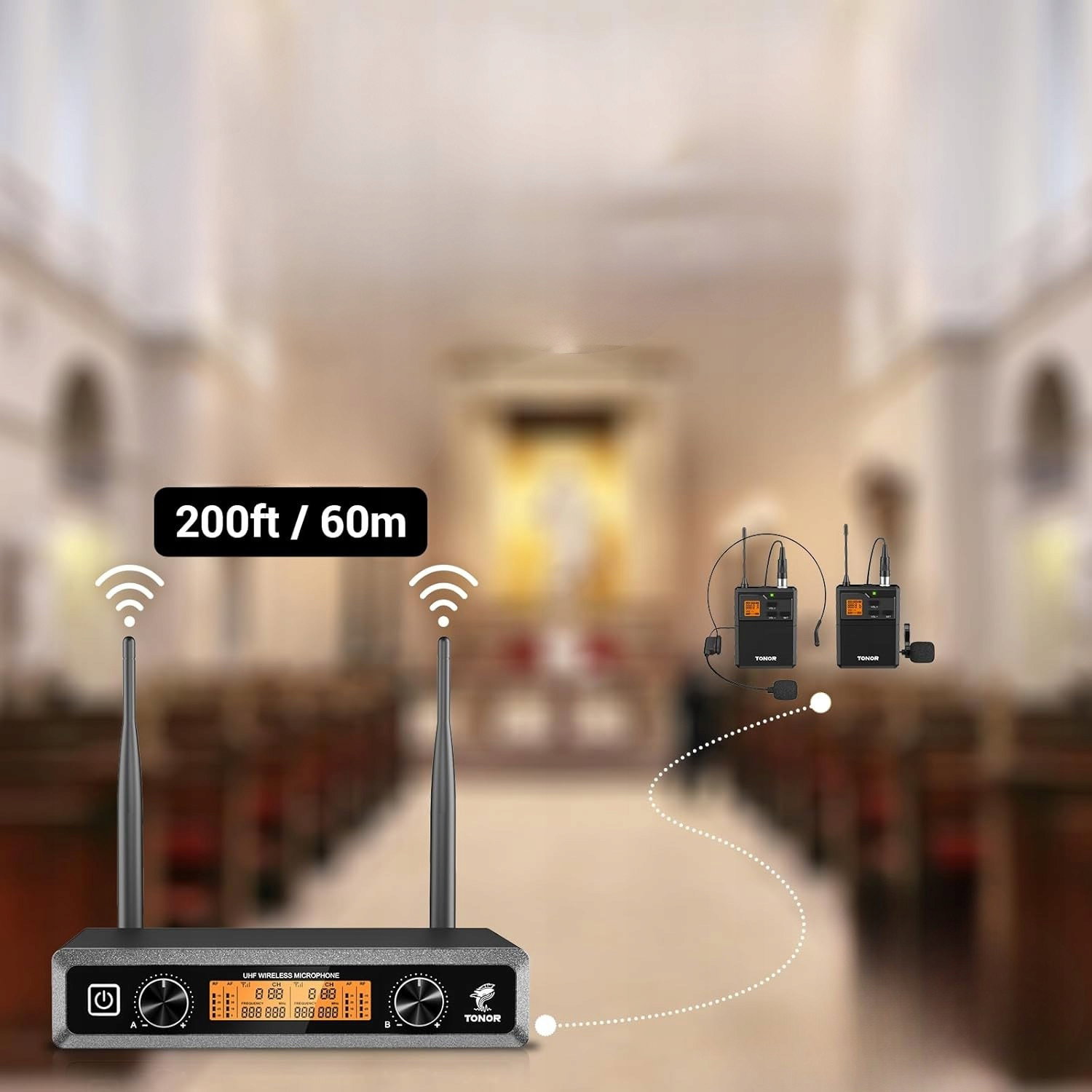 System mikrofonów bezprzewodowych TONOR UHF z mikrofonami słuchawkowymi/Lavalier Lapel Mics, nadajnik Bodypack, odbiornik, kanały 2 * 5, zakres 60M do śpiewu na żywo Karaoke Church Party
