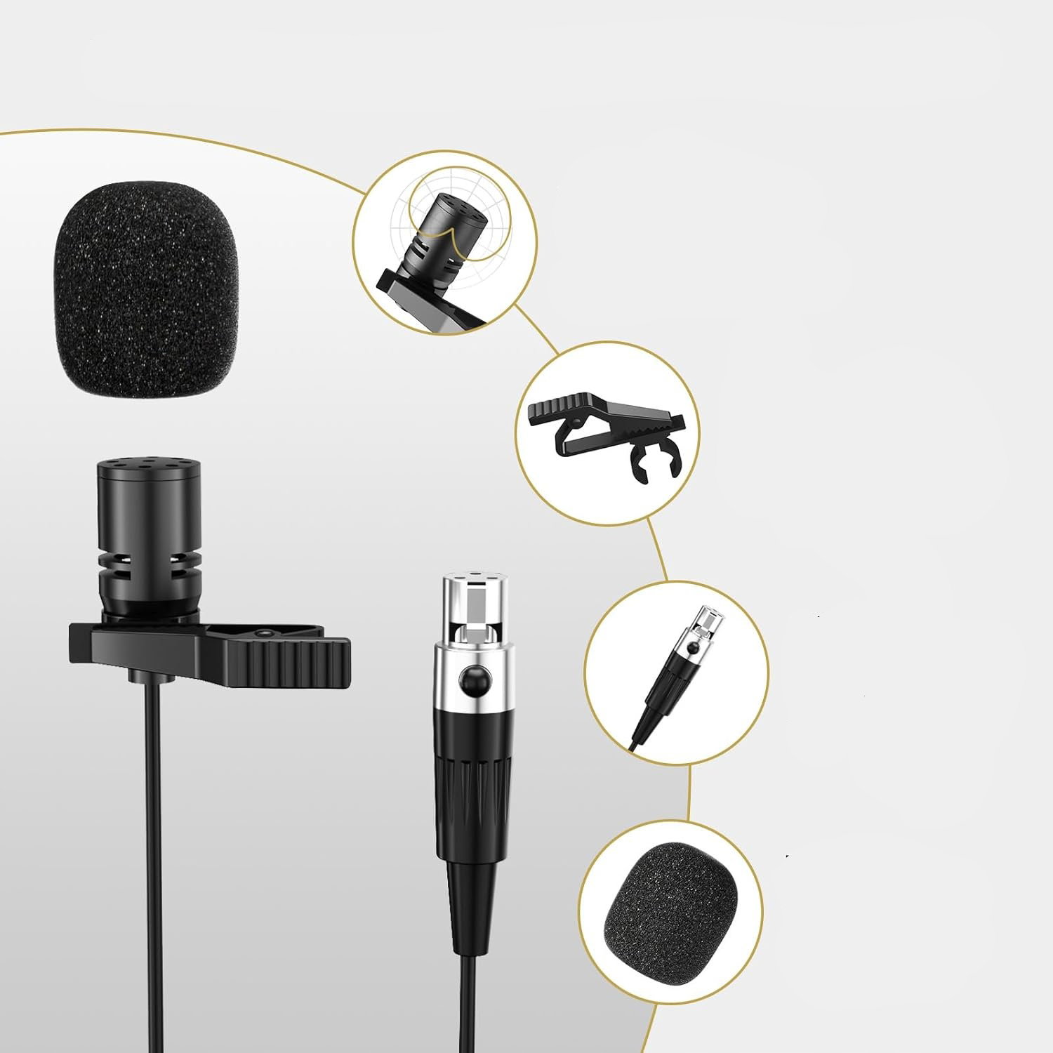 - Mikrofony nagłowne i krawatowe: w zestawie znajdują się mikrofony nagłowne oraz mikrofony lavalier, które zapewniają komfort noszenia i dyskretne użytkowanie. Zastosowane złącze Mini XLR (3-pin) gwarantuje stabilne połączenie i trwałość podczas częstego podłączania. Mikrofony zbierają głos równomiernie, co jest szczególnie przydatne podczas prezentacji i dynamicznych wystąpień.