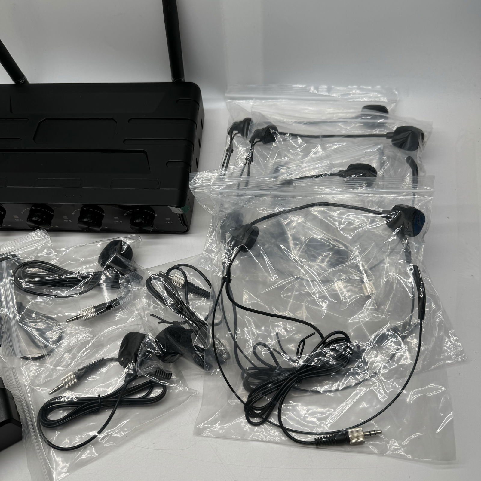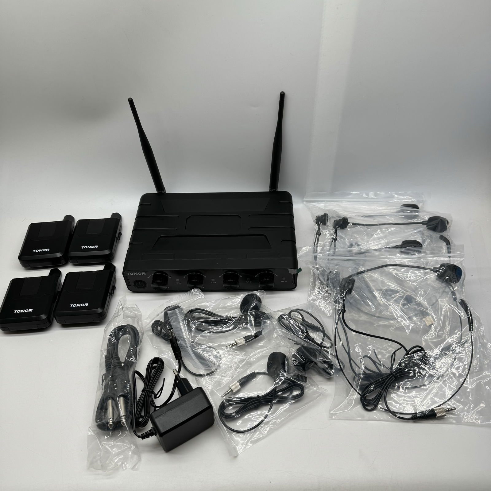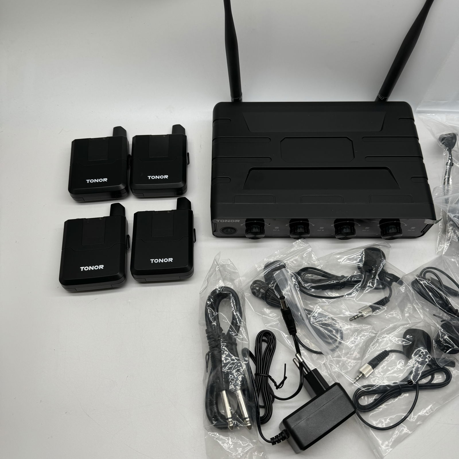 - Zestaw zawiera: 4 x bodypacki, 2 x mikrofony nauszne, 2 x mikrofony klapowe, 1 x odbiornik, 1 x kabel audio 6,35 mm, 1 x zasilacz i 1 x instrukcja obsługi.