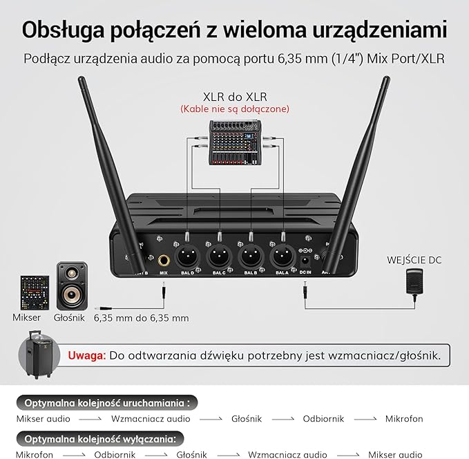 - Szeroka kompatybilność: Nasz mikrofon jest kompatybilny z różnymi urządzeniami, takimi jak miksery, maszyny do karaoke, wzmacniacze i zasilane głośniki. Można go łatwo podłączyć za pomocą dołączonego kabla audio 1/4" (6,35 mm), aby uzyskać optymalną jakość dźwięku.