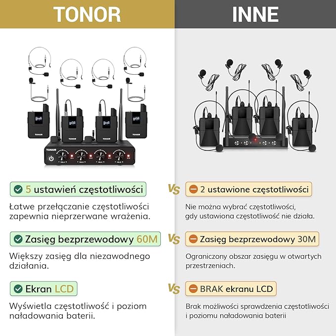 Bezprzewodowy zestaw TONOR TW364 UHF z 4 nadajnikami bodypack