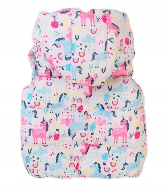 Ten bezrękawnik z kapturem w jednorożce będzie idealny dla dziewczynek w wieku od 2 do 9 lat.