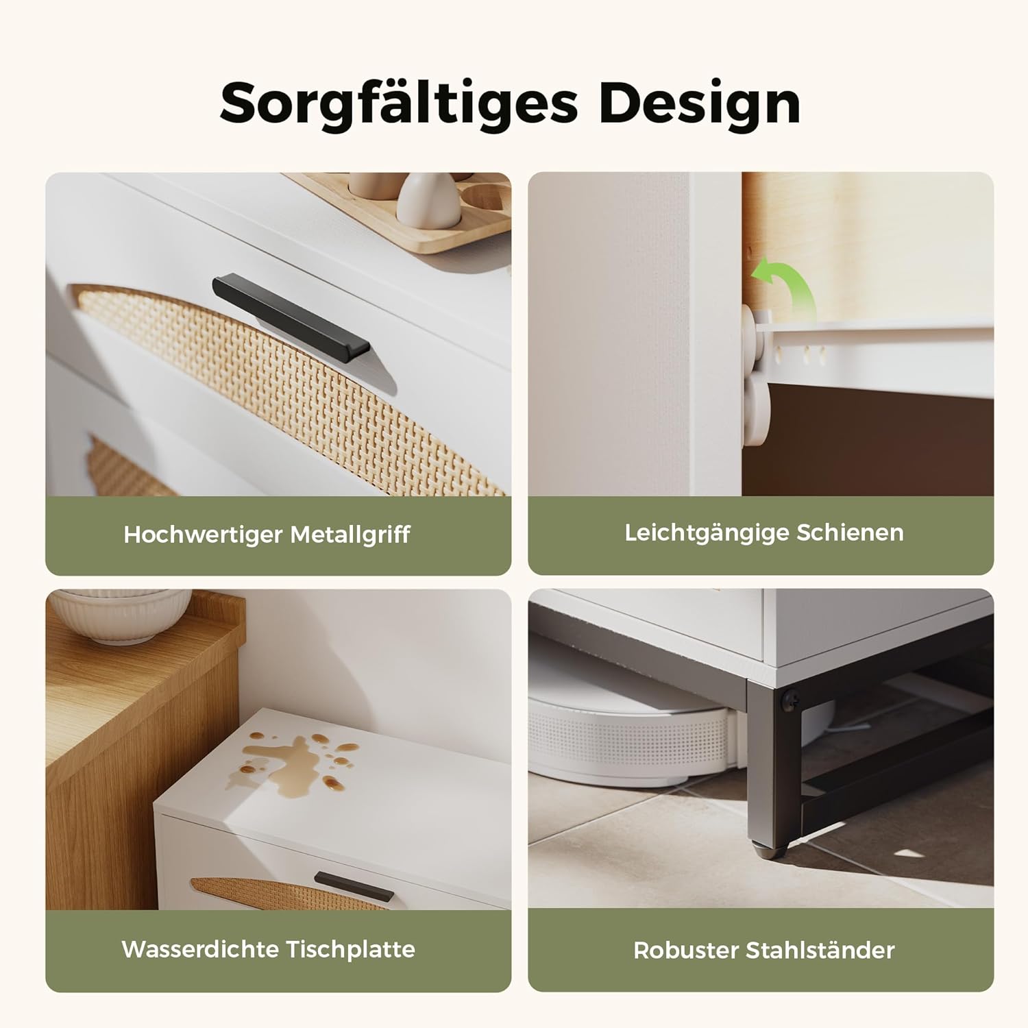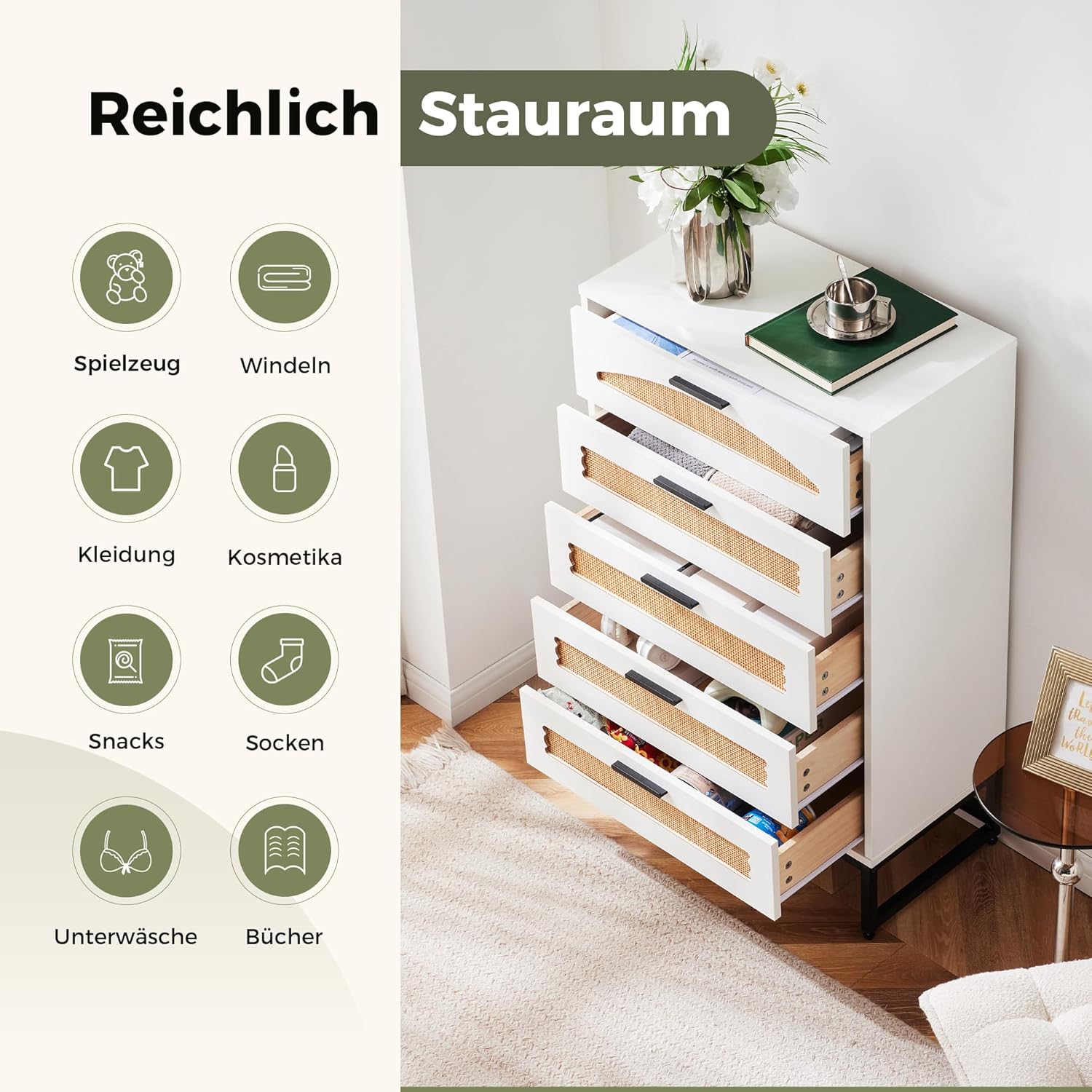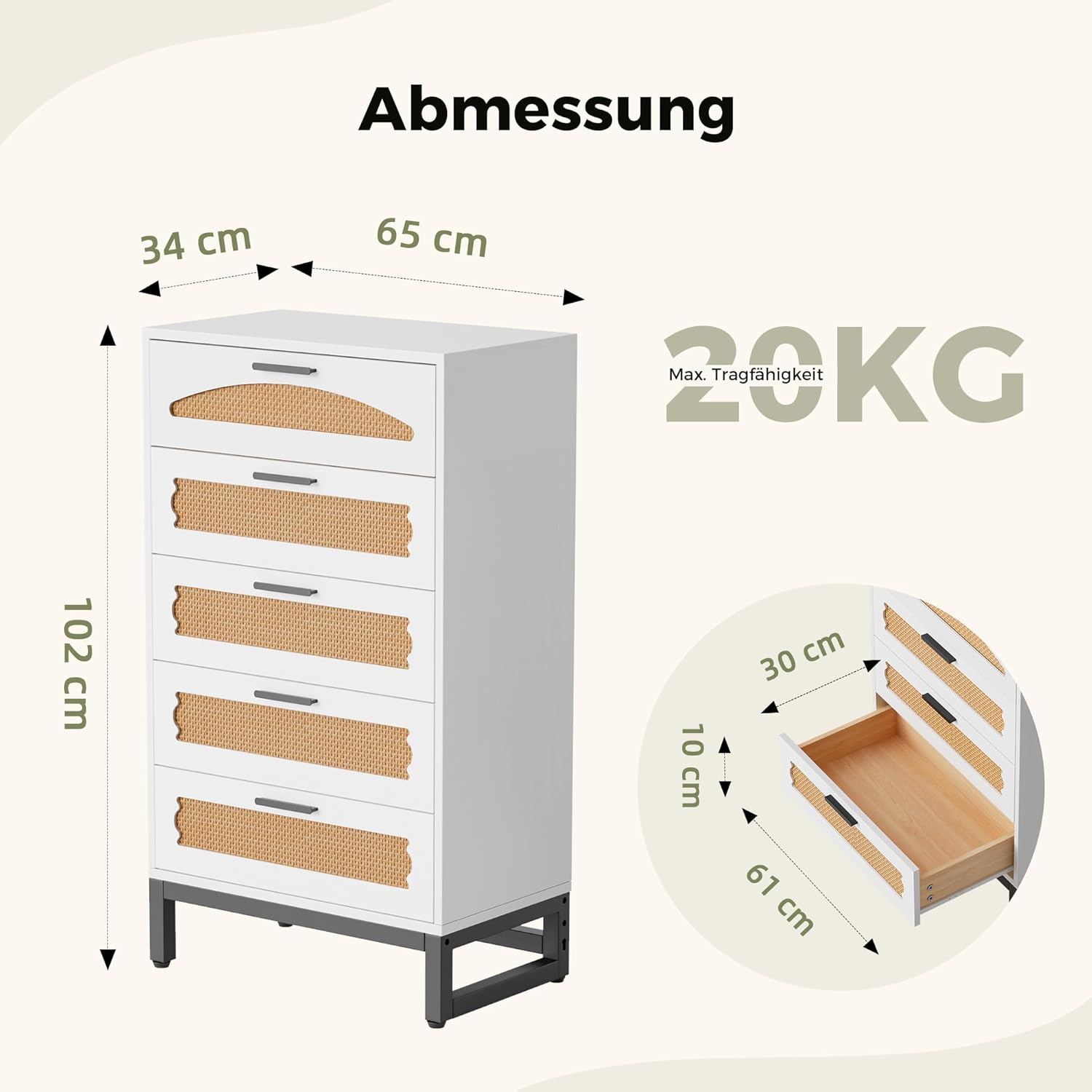 Nasza komoda z ratanu to idealne połączenie klasycznego uroku i nowoczesnej funkcjonalności. Dzięki zastosowaniu tradycyjnych technik tkania, ratan nie tylko prezentuje się stylowo, ale również jest trwały i odporny na wilgoć.